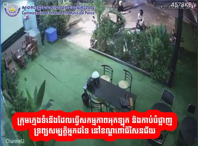 រាជធានីភ្នំពេញ៖ យោងតាមការចុះផ្សាយរបស់ ស្នងការដ្ឋាននគរបាលរាជធានីភ្នំពេញ នៅថ្ងៃទី១០ ខែមិថុនា ឆ្នា២០២២ បានឲ្យដឹងថា ក្រុមក្មេងទំនើងចំនួន ៩នាក់ ដែលបង្កបញ្ហាដោយកាប់បំផ្លាញទ្រព្យសម្បត្តិរបស់អ្នកដទៃនៅខណ្ឌពោធិ៍សែនជ័យ និងខណ្ឌ៧មករា ត្រូវបានសមត្ថកិច្ចចម្រុះនៃស្នងការដ្ឋាននគរបាលរាជធានីភ្នំពេញ បង្ក្រាប និងឃាត់ខ្លួនបាន។