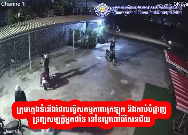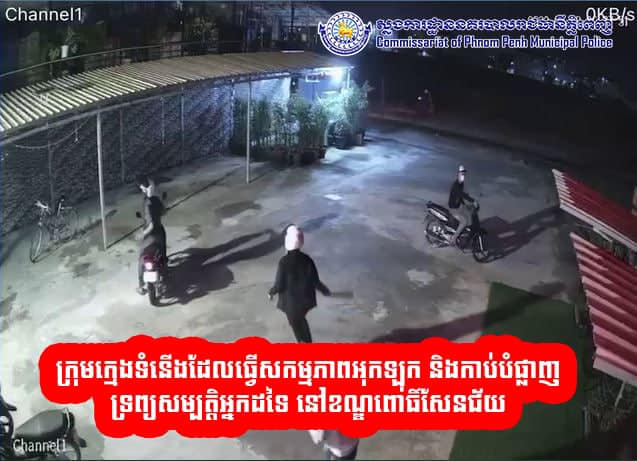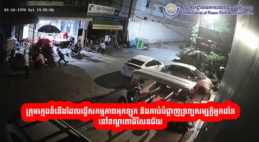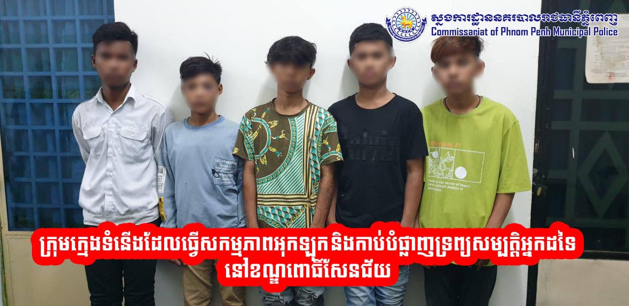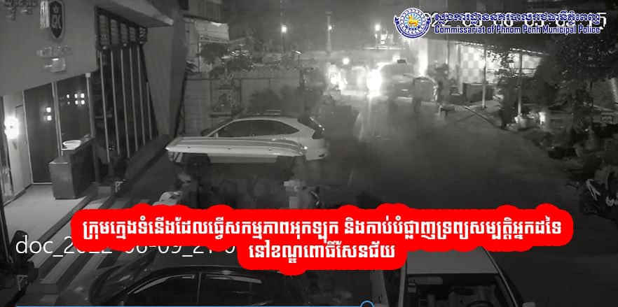 សមត្ថកិច្ចចម្រុះក្របួចជាប់ក្រុមក្មេងទំនើងចំនួន ៩នាក់ បំផ្លាញទ្រព្យសម្បត្តិអ្នកដទៃនៅខណ្ឌពោធិ៍សែនជ័យ និងខណ្ឌ៧មករា
