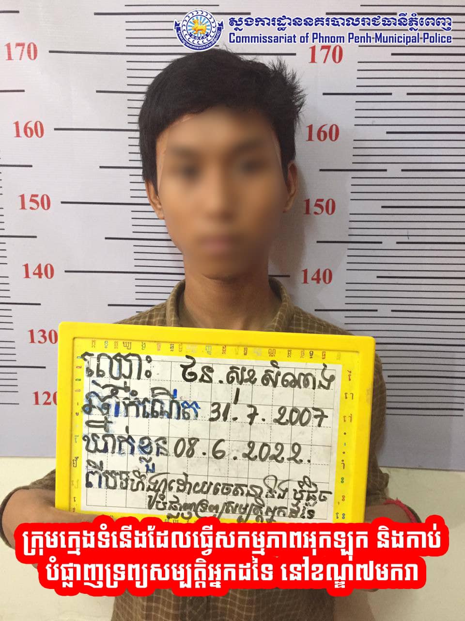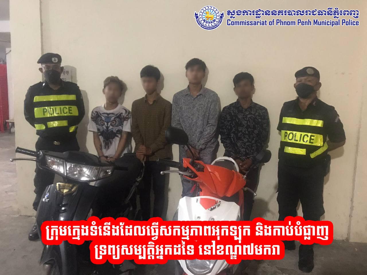 ដោយអនុវត្តតាមបទបញ្ជារបស់ឯកឧត្តម ឧត្តមសេនីយ៍ឯក ស ថេត អគ្គស្នងការរង និងជាស្នងការនគរបាលរាជធានីភ្នំពេញ និងដោយមានការដឹកនាំបញ្ជាផ្ទាល់របស់លោកឧត្តមសេនីយ៍ទោ សុង លី ស្នងការរងទទួលផែនការងារព្រហ្មទណ្ឌ កម្លាំងជំនាញការិយាល័យព្រហ្មទណ្ឌកម្រិតស្រាល នៃស្នងការដ្ឋាននគរបាលរាជធានីភ្នំពេញ សហការជាមួយកម្លាំងនៃអធិការដ្ឋាននគរបាល ខណ្ឌ៧មករា ខណ្ឌពោធិ៍សែនជ័យ និងខណ្ឌដង្កោ បានធ្វើការស្រាវជ្រាវ ឈានដល់ការឃាត់ខ្លួនក្រុមទាំងនេះ។