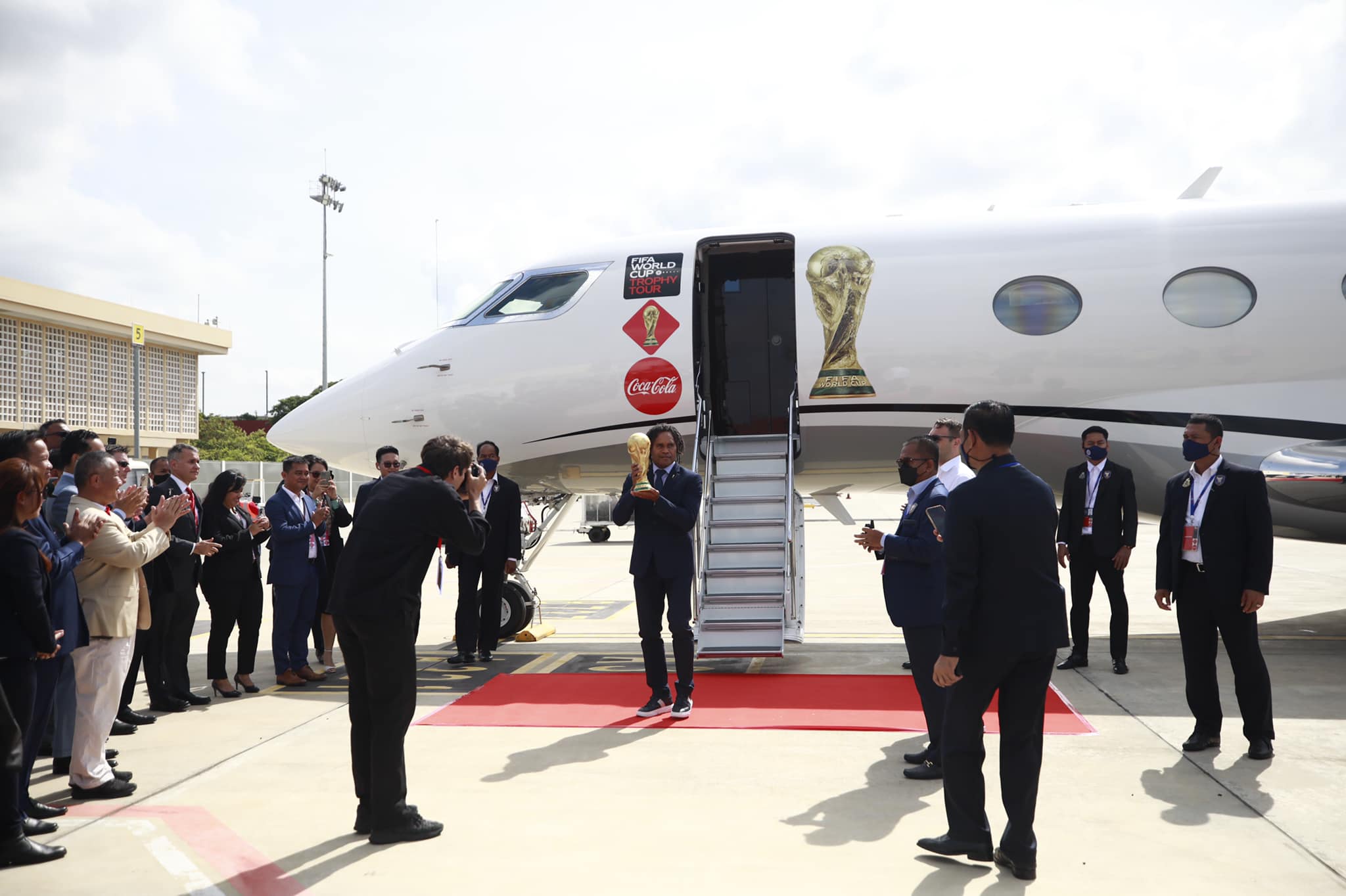 AKP ភ្នំពេញ ថ្ងៃទី១៥ ខែមិថុនា ឆ្នាំ២០២២ — យោងតាមការចុះផ្សាយរបស់ ក្រសួងព័ត៌មាន បានឲ្យដឹងថា ពានរង្វាន់បាល់ទាត់ពិភពលោក បានធ្វើដំណើរមកដល់ព្រលានយន្តហោះអន្តរជាតិភ្នំពេញ នាព្រឹកថ្ងៃទី១៥ ខែមិថុនា ឆ្នាំ២០២២ ក្នុងដំណើរទេសចរណ៍របស់ពានរង្វាន់បាល់ទាត់ពិភពលោកនេះ នៅក្នុងព្រះរាជាណាចក្រកម្ពុជារយៈពេល ០៣ថ្ងៃ៕