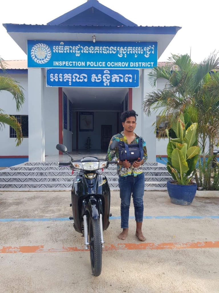 បន្ទាយមានជ័យ ៖ យោងតាមការចុះផ្សាយរបស់ នាយកដ្ឋានផ្សព្វផ្សាយអប់រំ បានឲ្យដឹងថា លោកវរសេនីយ៍ទោ អ៊ឹម សុភារៈ អធិការនគរបាលស្រុកអូរជ្រៅ បានប្រាប់ថា ៖ នគរបាលស្រុកអូរជ្រៅ បានឃាត់ខ្លួនជនសង្ស័យម្នាក់ ក្រោយពីធ្វើសកម្មជិះម៉ូតូ១គ្រឿងម៉ាកហុងដាទ្រីម សេ១២៥ ពណ៍ខ្មៅ សេរីឆ្នាំ២០២០ ពាក់ស្លាគលេខបាត់ដំបង1AL១៣៨៦ ឆក់កាបូបបានសម្រេច នៅថ្ងៃទី២០ មិថុនា ឆ្នាំ២០២២ នៅវេលាម៉ោង០២ល្ងាច ត្រង់ចំណុចផ្សារគុត្តសត ស្ថិតនៅភូមិយាងថ្មី ឃុំកូប ស្រុកអូរជ្រៅ ខេត្តបន្ទាយមានជ័យ។