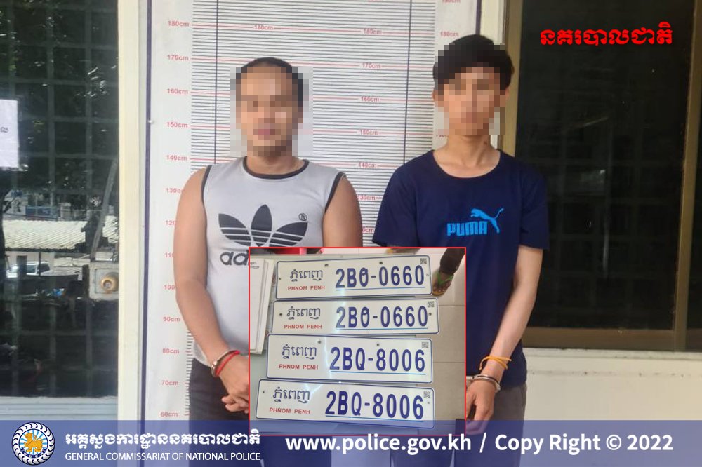 ឃាត់ខ្លួនជនសង្ស័យ ២នាក់ ពាក់ព័ន្ធករណីលួចផ្លាកលេខរថយន្ដ នៅក្នុងខេត្តព្រះសីហនុ