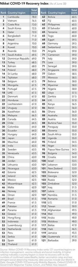 ជាមួយគ្នានេះ ប្រទេសវៀតណាម បានជាប់ចំណាត់ថ្នាក់លេខពីរនៅក្នុងសន្ទស្សន៍។ នេះបង្ហាញថា ប្រទេសអាស៊ីអាគ្នេយ៍ទាំងពីរកំពុងដំណើរការយ៉ាងល្អក្នុងការវិលទៅរកប្រក្រតីភាពថ្មីនៅក្នុងសង្គមវិញ៕ ប្រភព៖ ក្រសួងព័ត៌មាន