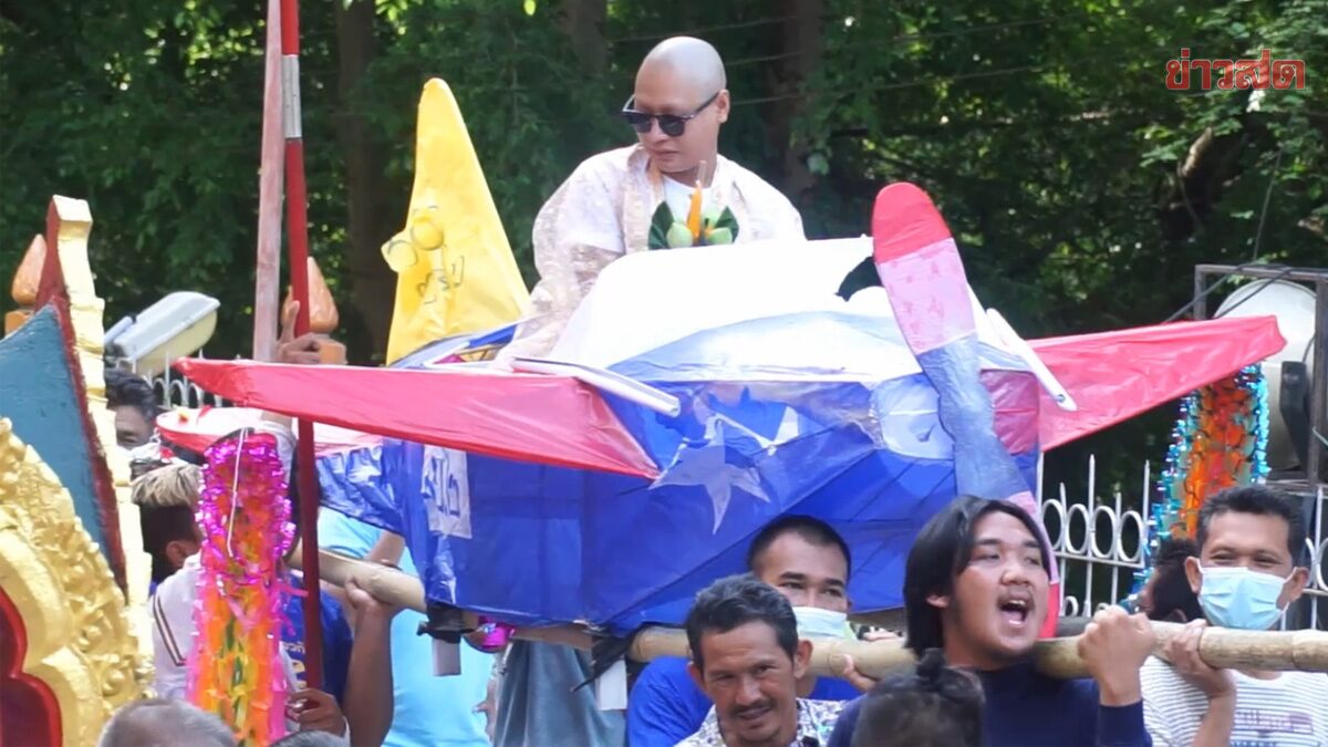 ថៃ៖ កាលពីថ្ងៃទី១១ ខែកក្កដា អ្នកយកព័ត៌មានបានទទួលដំណឹងថា មានពិធីសូត្រមន្តបំបួសនាគមួយបានរៀបចំយ៉ាងប្លែក ដោយម្ចាស់កម្មវិធីបានរៀបចំពិធីបំបួសនាគឱ្យកូនប្រុស ដោយជិះយន្តហោះដែលធ្វើពីដែក។ ពិធីបំបួសនាគនោះត្រូវបានធ្វើឡើងនៅនៅឃុំសារិកា ខេត្តណាខនណាយុគ ដោយលោកប្រាសិទ្ធ ឡាប៉ា អាយុ៥៦ឆ្នាំ ជាមេភូមិនៃតំបន់នោះ។ លោកប្រាសិទ្ធ បានរៀបចំពិធីបំបួសនាគឱ្យកូនប្រុសរបស់គាត់ឈ្មោះថា កិត្តិថាត់ ឡាប៉ា ដោយជិះយន្តហោះដែលធ្វើពីដែកគ្របដោយក្រដាសថ្លា ជាមួយការបាញ់ថ្នាំបាញ់ដើម្បីឱ្យមើលទៅស្រស់ស្អាត ដង្ហែជុំវិញព្រះវិហារ។ នៅក្នុងក្បួននោះ មានទាំងអ្នករាំដង្ហែរយ៉ាងសប្បាយ។