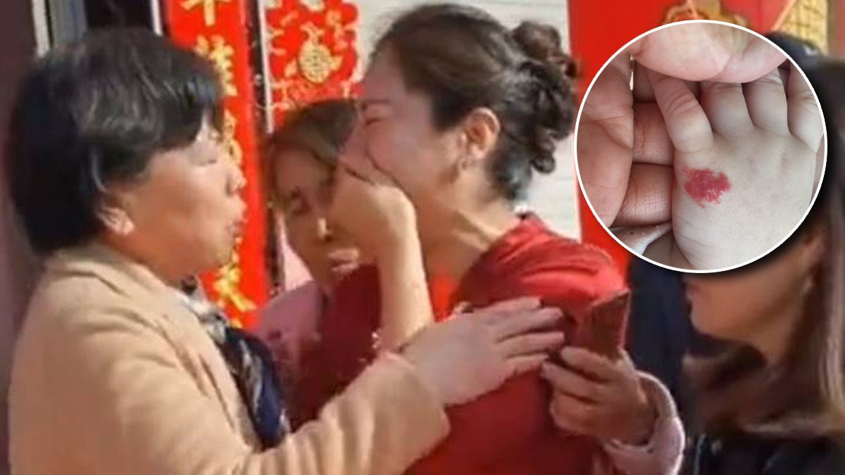 ស្ត្រីម្នាក់រស់នៅក្នុងទីក្រុង Suzhou ខេត្ត Jiangsu ប្រទេសចិន មានការតក់ស្លុត និងស្រក់ទឹកភ្នែកយ៉ាងខ្លាំង បន្ទាប់​ពី​ដឹង​ថា កូន​ប្រសារ​ស្រីរបស់គាត់ តាមពិតទៅគឺជាកូនស្រីបង្កើតរបស់គាត់ ដែលបានបាត់ខ្លួនអស់ជាច្រើនឆ្នាំមកហើយ។ មូលហេតុ​​ស្ត្រី​ម្នាក់​នេះ​ប្រាកដ​ថា ​កូនប្រសា​រនេះគឺជា​កូនស្រី​បង្កើតដែលបាន​បាត់​ខ្លួន គឺដោយសារតែគាត់ឃើញស្នាមក្រហមនៅលើដៃស្តាំរបស់កូនប្រសារស្រី ក្នុងពិធីមង្គលការ ហើយបន្ទាប់ពីសួរនាំដឹងការពិតហើយនោះ គាត់​និង​កូន​ស្រី​បាន​ឱប​គ្នាយំយ៉ាងខ្លាំង។