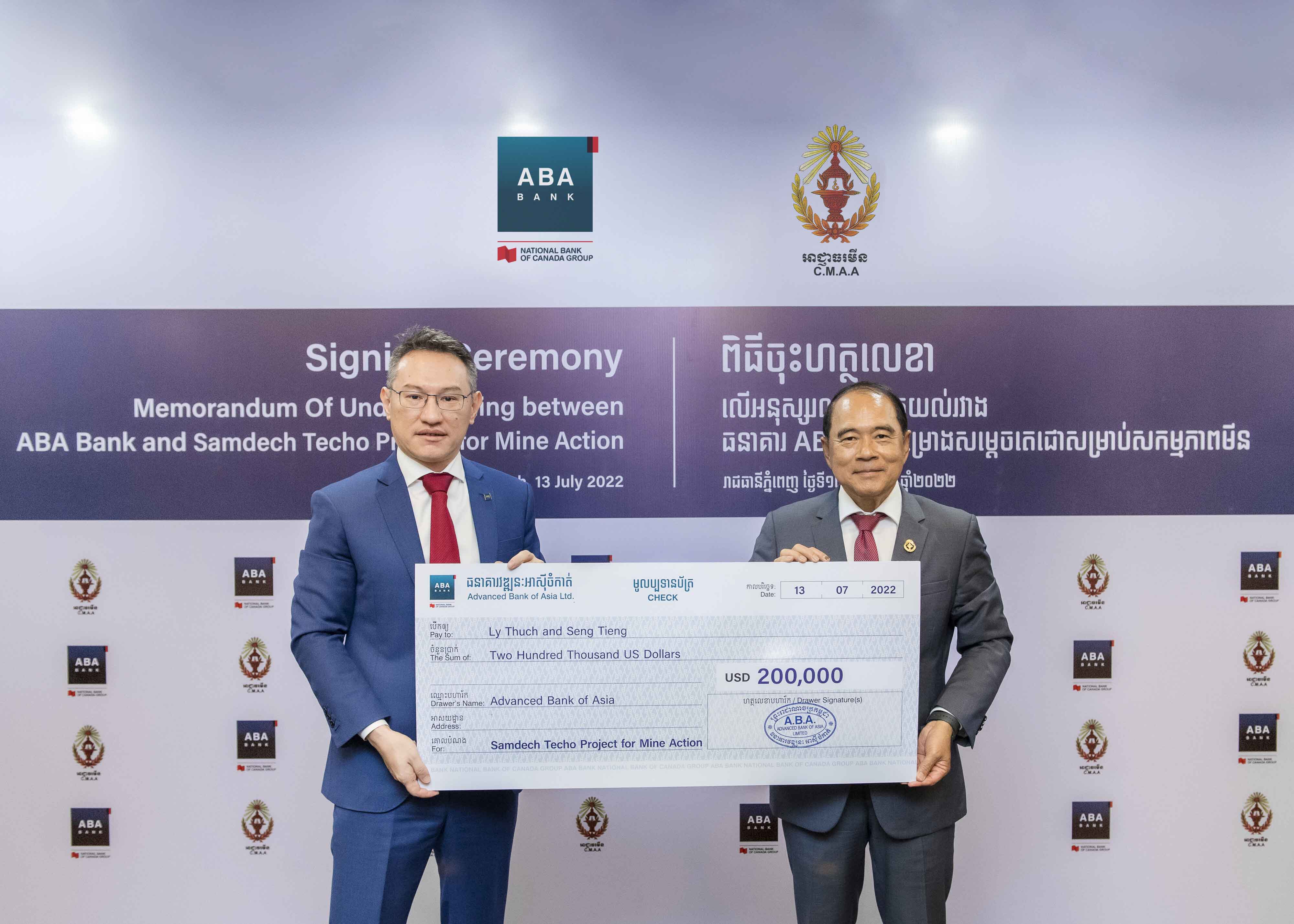 ធនាគារ ABA គាំទ្រគម្រោងសម្ដេចតេជោសម្រាប់គោលដៅកម្ពុជាគ្មានមីន តាមរយៈការបរិច្ចាគទឹកប្រាក់ 200,000 ដុល្លារអាមេរិក