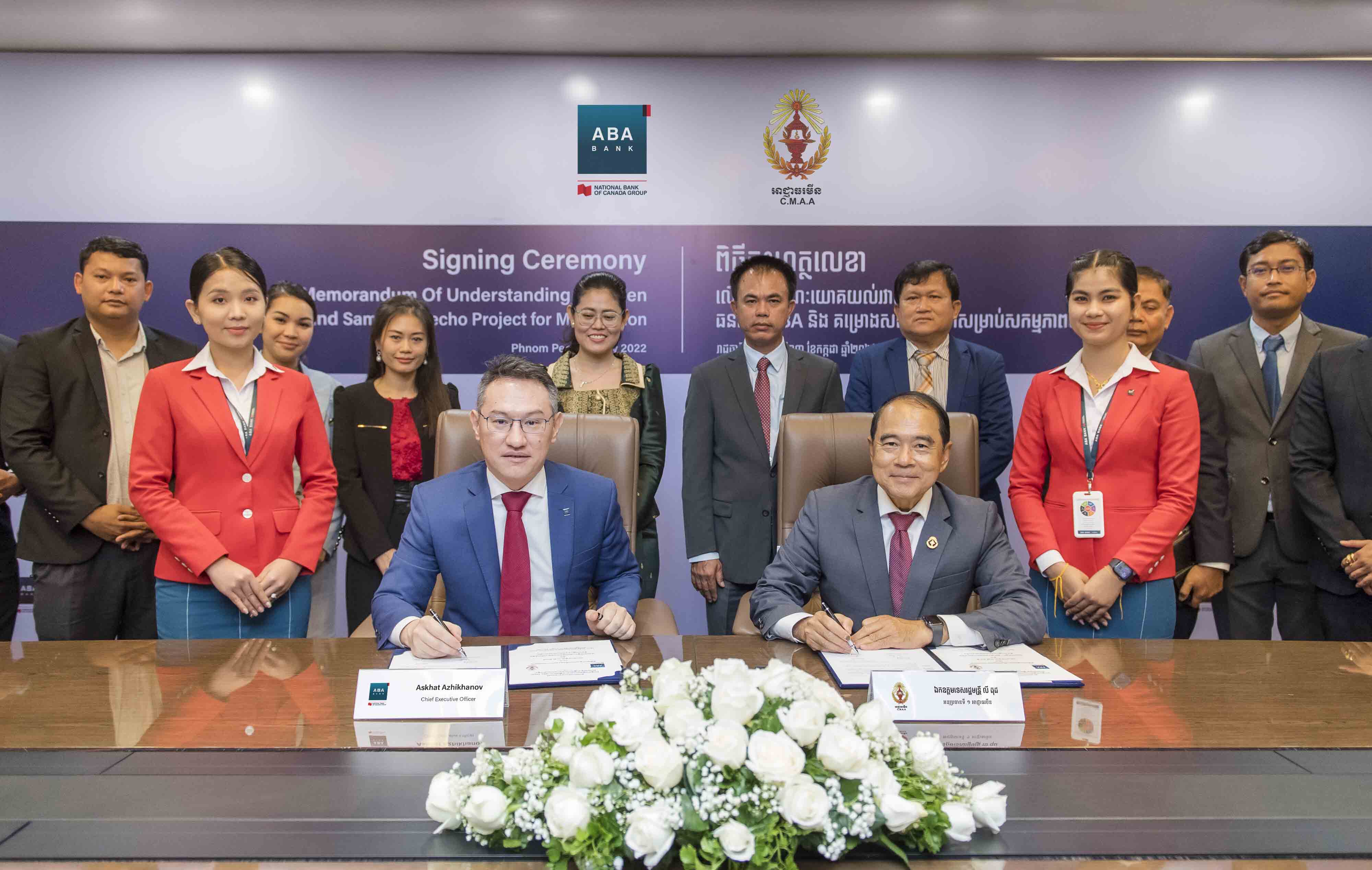 ពិធីចុះហត្ថលេខាលើអនុស្សរណៈនៃការយោគយល់គ្នានេះ ធ្វើឡើងក្រោមអធិបតីភាពឯកឧត្តម លី ធុជ ទេសរដ្ឋមន្រ្តី និងជាអនុប្រធានទី1 អាជ្ញាធរមីន, លោក Askhat Azhikhanov នាយកប្រតិបត្តិធនាគារ ABA ព្រមទាំង ភ្ញៀវកិត្តិយសជាច្រើនរូបទៀត នៅការិយាល័យកណ្ដាលធនាគារ ABA។
