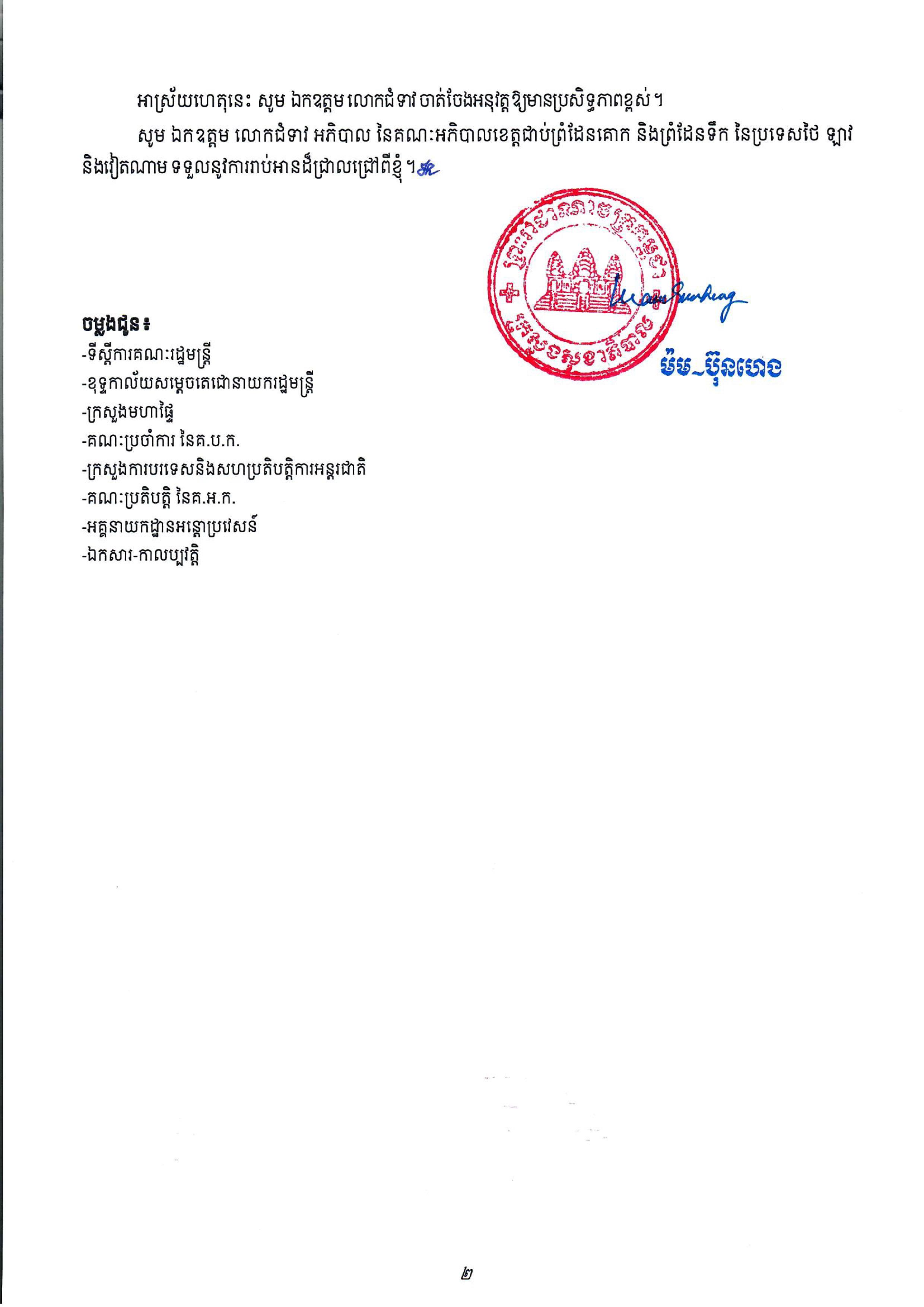 ក្រសួងសុខាភិបាល ណែនាំឱ្យបណ្ដាខេត្តជាប់ព្រំដែនគោក និងព្រំដែនទឹក នៃប្រទេសថៃ ឡាវ វៀតណាម អនុវត្តវិធានការសុខាភិបាល សម្រាប់អ្នកដំណើរ មិនទាន់ចាក់វ៉ាក់សាំងកូវីដ-១៩