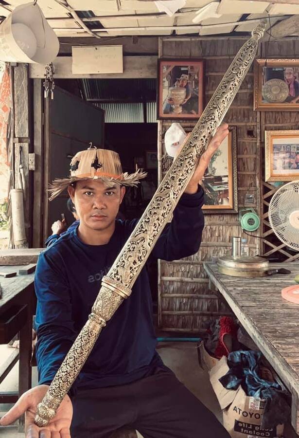 ក្នុងនោះដែលលោក បានបន្តថា សម្រាប់សិស្ស និស្សិតដែលចង់សិក្សារៀន សូត្រពីបច្ចេកទេសជំនាញចម្លាក់ស្ពាន់អាចមកសិក្សារៀនសូត្របានដោយផ្ទាល់ជាមួយលោក។ (ខ្ញុំសូមផ្ដាំផ្ញើទៅដល់កូនខ្មែរយើងដែលធ្វើជាងទងដូចគ្នា គ្រប់ជាងទាំងអស់ ជាងផ្នែកប្រាក់ស្ពាន់ ចម្លាក់ប្រាក់ស្ពាន់ ឈើគេមានហើយ ឈើគេរៀនឆាប់ចេះណាស់ប៉ុន្តែសម្រាប់ចម្លាក់ស្ពាន់កម្ររៀនចេះណាស់ដោយសារមានក្បូរក្បាច់អង្គរច្រើន ចឹងខ្ញុំសូមផ្ដាំឲ្យកូនចៅខំមើលខំរៀន បន្តទៅទៀតដើម្បីស្វែងយល់ចំណេះទាំងអស់នេះកុំឲ្យបាត់បង់ នៅក្នុងប្រទេសយើង ចឹងបានខ្ញុំផ្ដាំទៅជាងចម្លាក់ប្រាក់ស្ពាន់ទាំងអស់ ឲ្យខំធ្វើឲ្យបាន)។