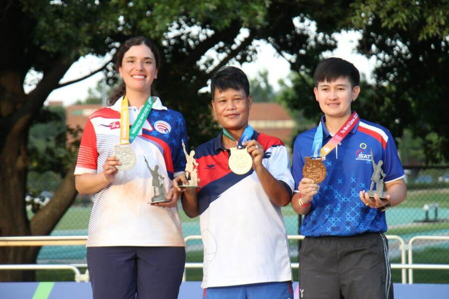 គួរបញ្ជាក់ថា ការប្រកួតកីឡាពិភពលោក ឆ្នាំ២០២២ នៅសហរដ្ឋអាមេរិក កីឡាប៉េតង់ វិញ្ញាសាវាយយកពិន្ទុមាន៨ប្រទេសចូលរួម គឺកម្ពុជា ដាណឺម៉ាក បារាំង កាណាដា អាល្លឺម៉ង់ អាមេរិក ថៃ និងបែលហ្ស៊ិក។ ជម្រុះជុំទី១ កម្ពុជាឈរលេខ៤ ត្រូវប្រកួតជុំទី២ ដើម្បីឡើងទៅជួបលេខ១ ថៃ និងលេខ២ ដាណឺម៉ាក ដែលឈរចាំជុំទី២ ក្នុងចំណោមកីឡាការិនីមកពី៦ប្រទេស។ កម្ពុជាឈរលេខ១ជុំទី២ ប៉ះ ដាណឺម៉ាក លេខ២ជុំទី១ ស្របពេលអាមេរិកលេខ២ ប៉ះ ថៃលេខ១ នៅជុំទី១ ដើម្បីឡើងវគ្គផ្តាច់ព្រ័ត្រ។ វគ្គពាក់កណ្ដាលផ្ដាច់ព្រ័ត្រ កម្ពុជាបានឈ្នះ ដាណឺម៉ាក ៣៧-២៣ ខណៈកីឡាការិនីអាមេរិកឈ្នះថៃ ៣៧-៣៨ ។