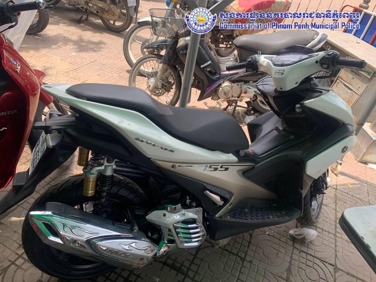 សូមបញ្ជាក់ផងដែរថា នៅព្រឹកថ្ងៃទី២៧ ខែកក្កដា ឆ្នាំ២០២២ កម្លាំងប៉ុស្តិ៍នគរបាលរដ្ឋបាលទន្លេបាសាក់ បានចុះល្បាតពួនស្ទាក់ក្នុងមូលដ្ឋានក៏ប្រទះឃើញម៉ូតូ០១គ្រឿងម៉ាក Yamaha Aerow ពណ៌ ស ពាក់ផ្លាកលេខ ភ្នំពេញ 1HC-7555 ដែលទុកចោលនៅក្នុងកោះពេជ្រ ផ្លូវបេតុង ក្រុម៧៨ ភូមិ១៤ សង្កាត់ទន្លេបាសាក់ ខណ្ឌចំការមន រាជធានីភ្នំពេញ។ បច្ចុប្បន្នម៉ូតូខាងលើត្រូវបានរក្សាទុកនៅស្នាក់ការប៉ុស្តិ៍នគរបាលរដ្ឋបាលទន្លេបាសាក់ រងចាំម្ចាស់មកទទួលយកទៅវិញ។ សូមបញ្ជាក់ សូមភ្ជាប់មកជាមួយនូវឯកសារពាក់ព័ន្ធមកជាមួយផង៕