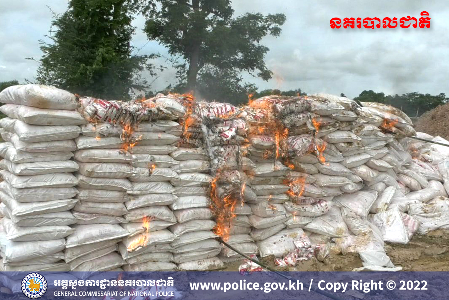 ខេត្តសៀមរាប ៖ យោងតាមការបញ្ជាក់ពី អគ្គស្នងការដ្ឋាននគរបាលជាតិ បានឲ្យដឹងថា យោងតាមចំណារឯកភាពដ៏ខ្ពង់ខ្ពស់ សម្តេចក្រឡាហោម ស ខេង ឧបនាយករដ្ឋមន្ត្រី រដ្ឋមន្ត្រីក្រសួងមហាផ្ទៃ ចុះថ្ងៃទី១៤ ខែកក្កដា ឆ្នាំ២០២២ ឯកភាពលើការស្នើសុំរបស់រដ្ឋលេខាធិការ និងជាប្រធានគណៈកម្មការធិការ (គ.ប.ផ.ក) កម្ទេចចោលវត្ថុតាង ប៊ីចេងសញ្ញារូបវែក (ក្លែងក្លាយ) ចំនួនប្រហែល ១៨តោន ដែលក្រុមប្រតិបត្តិបានបង្ក្រាបកាលពីឆ្នាំ២០១៩ កន្លងមក និងយោងតាមសាលក្រមព្រហ្មទណ្ឌលេខ: ១៧២”ឆ” ចុះថ្ងៃទី១៥ ខែកញ្ញា ឆ្នាំ២០២០ ពីបទក្លែងបន្លំពាណិជ្ជសញ្ញា និងក្លែងផលិតផលទំនិញ ឬទុកសម្រាប់ធ្វើពាណិជ្ជកម្ម (ប៊ីចេងសញ្ញារូបវែក) ប្រព្រឹត្តទៅនៅភូមិខ្នារ សង្កាត់ជ្រាវ ក្រុងសៀមរាប កាលពីថ្ងៃទី១៨ ខែធ្នូ ឆ្នាំ២០១៩ ។