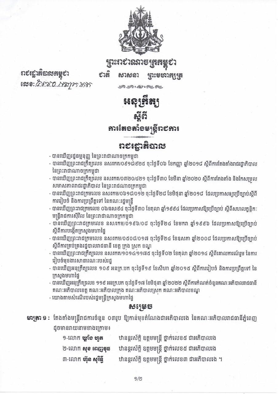 លោក ឃ្លាំង ហួត, លោក សុខ ពេញវុធ និង លោក ហ៊ុន សុរិទ្ធី ត្រូវបានតែងតាំងជាអភិបាលរង រាជធានីភ្នំពេញ