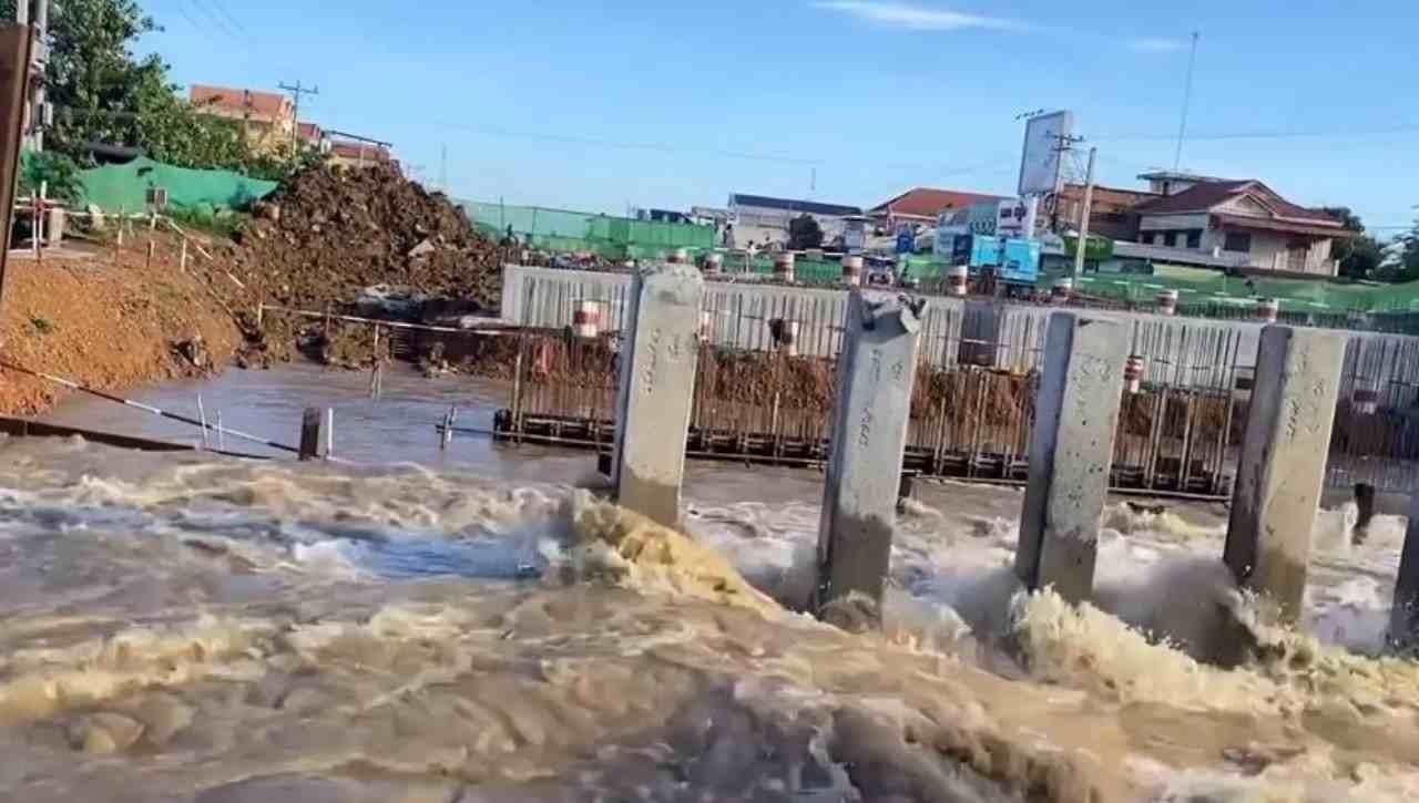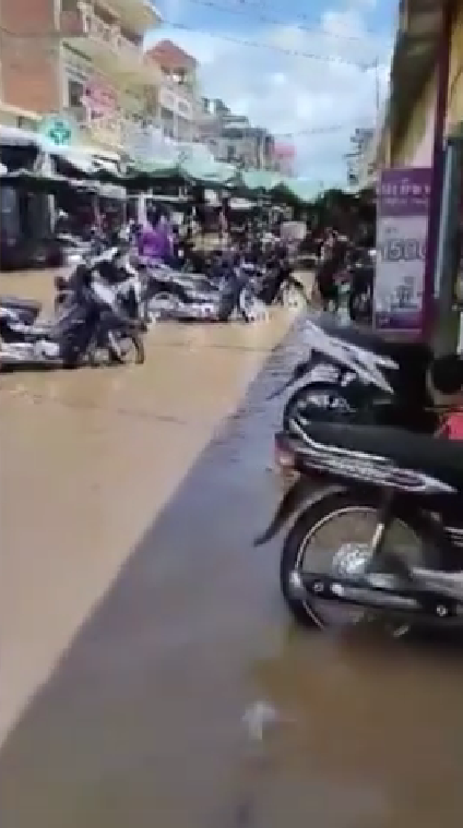 អាជ្ញាធរកំពុងអន្តរាគមន៍បញ្ចៀសការលិចលង់ កម្លាំងទឹកហូរពីទំនប់បាសាក់ ហូរទម្លាក់តាមស្ទឹងយ៉ាងគំហុក លិចផ្សារមោងឫស្សីខេត្តបាត់ដំបង