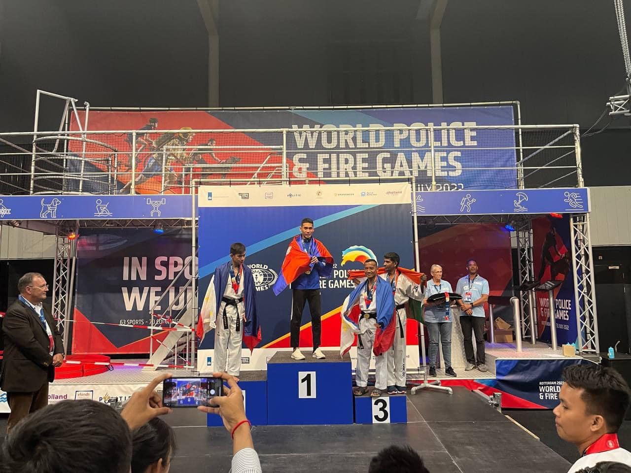 អបអរសាទរ កីឡាករតេក្វាន់ដូ WT ចំនួន០៣រូប ទទួលបានមេដាយមាស ពីការប្រកួត World Police & Fire Games 2022 នៅប្រទេសហូឡង់