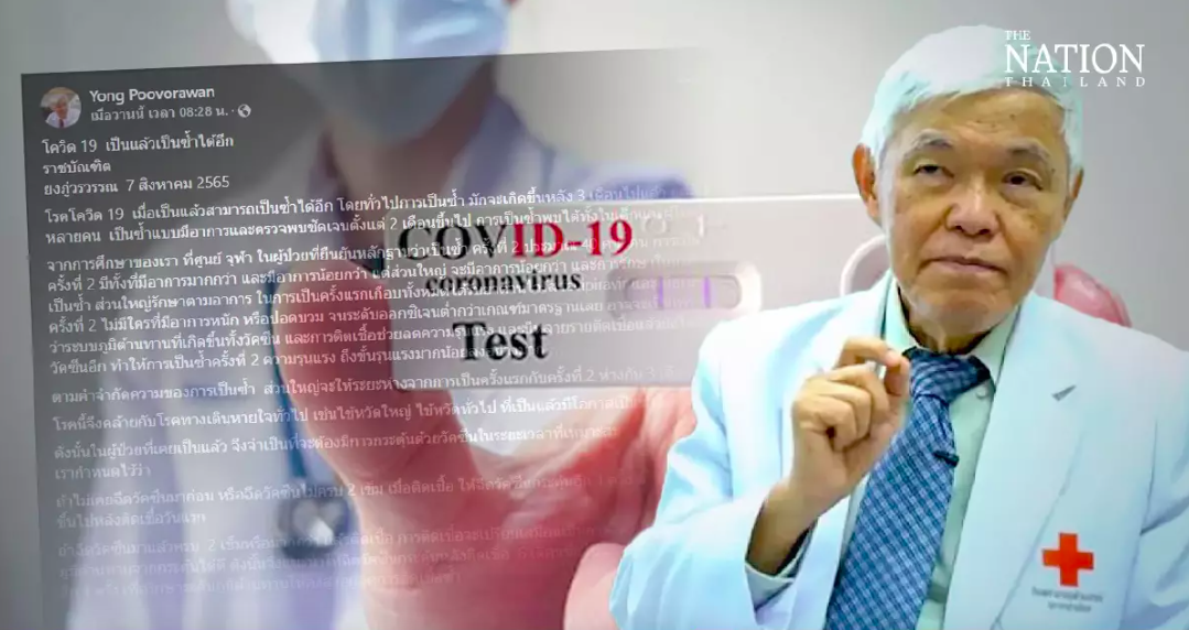 អ្នកជំនាញខាងមេរោគរបស់ថៃបានព្រមានមនុស្សថា អ្នកធ្លាប់ឆ្លងជំងឺ COVID-19 មិនមែនមានន័យថា ពួកគេនឹងមិនឆ្លងវាម្តងទៀតនោះទេ។ នៅក្នុងការបង្ហោះ Facebook កាលពីថ្ងៃអាទិត្យ លោកវេជ្ជបណ្ឌិត Yong Poovorawan បាននិយាយថា មនុស្សភាគច្រើនមានហានិភ័យក្នុងការឆ្លងជំងឺ COVID-19 ឡើងវិញក្នុងរយៈពេល ៣ខែ បន្ទាប់ពីការជាសះស្បើយ ហើយក៏មានអតីតអ្នកជំងឺមួយចំនួនបានឆ្លងវាឡើងវិញ បន្ទាប់ពីរយៈពេលត្រឹមតែ ២ ខែប៉ុណ្ណោះ។ ការអះអាងនេះ គឺយោងទៅតាមការសិក្សារបស់មជ្ឈមណ្ឌលឧត្តមភាពផ្នែករោគវិទ្យានៃសាកលវិទ្យាល័យ Chulalongkorn លើមនុស្ស ៤០ នាក់ ដែលបានឆ្លងជាលើកទី២។ វាសិក្សាលើអ្នកជំងឺដែលមានរោគសញ្ញាស្រាល (ភាគច្រើន) ក៏ដូចជាអ្នកដែលមានរោគសញ្ញាធ្ងន់ធ្ងរ (ភាគតិច)។