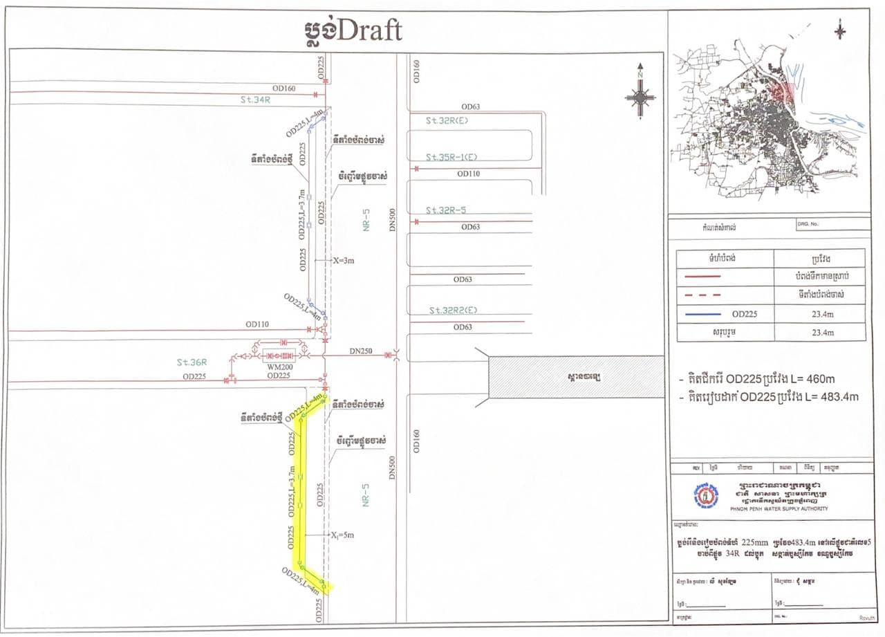 ការងារភ្ជាប់បំពង់ចែកចាយទឹកទំហំ ២២៥មម នេះតម្រូវឱ្យរដ្ឋាករទឹកស្វយ័តក្រុងភ្នំពេញ ផ្អាកការផ្គត់ផ្គង់ ទឹកមួយរយៈពេលខ្លីប្រមាណជាង ០៥ម៉ោង គឺចាប់ពីម៉ោង ២២៖០០នាទីយប់ ដល់ម៉ោង ០៣៖០០នាទីទាបភ្លឺ និងអាចធ្វើឱ្យគុណភាពទឹកមានភាពល្អក់កករក្នុងរយៈពេលខ្លីក្រោយពេលធ្វើការភ្ជាប់បំពង់ចែកចែយទឹកនេះរួច។ អាស្រ័យហេតុនេះ សូម អភិបាល មេត្តាជួយផ្សព្វផ្សាយព័ត៌មានជូនប្រជាពលរដ្ឋ ស្ថាប័ន រោងចក្រ សហគ្រាស ដែលមានលំនៅដ្ឋាន និងទីតាំងខាងលើ ដែលត្រូវរងការខ្វះទឹករយៈពេលខ្លីនេះ ដើម្បីត្រៀមបម្រុងទឹក សម្រាប់ប្រើប្រាស់ ក្នុងរយៈពេលដូចបានជម្រាបជូនខាងលើ ដោយក្ដីអនុគ្រោះ ៕