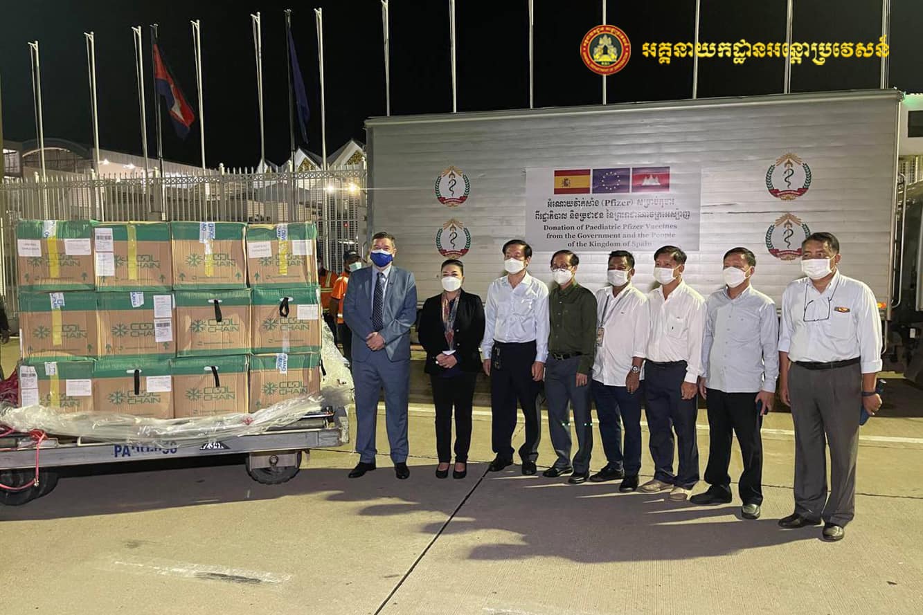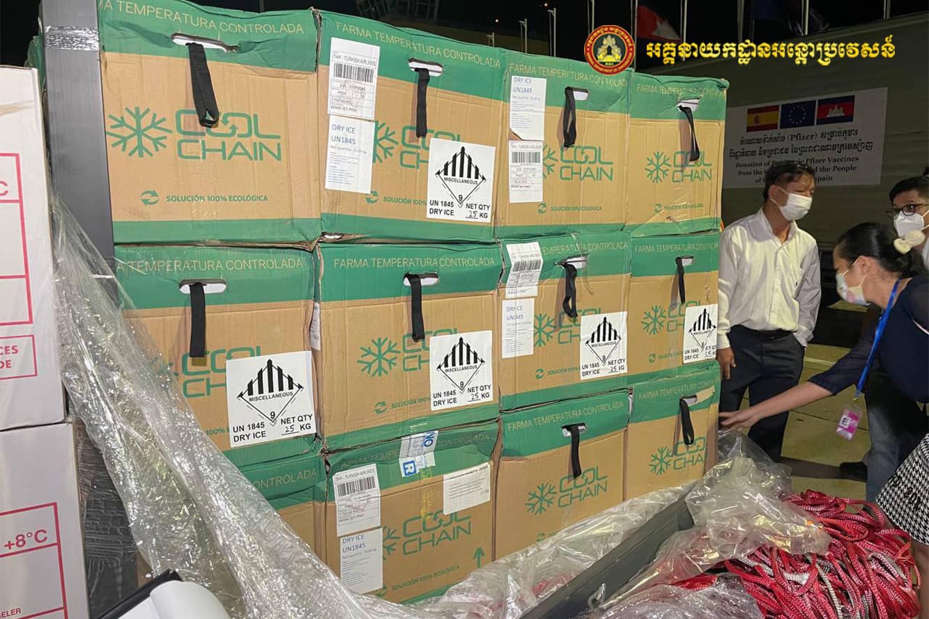 វ៉ាក់សាំងបង្ការកូវីដ១៩ ប្រភេទ Pfizer ចំនួន ៣០ម៉ឺនដូស ដែលជាជំនួយរបស់រដ្ឋាភិបាលអេស្ប៉ាញបានដឹកមកដល់កម្ពុជាហើយ