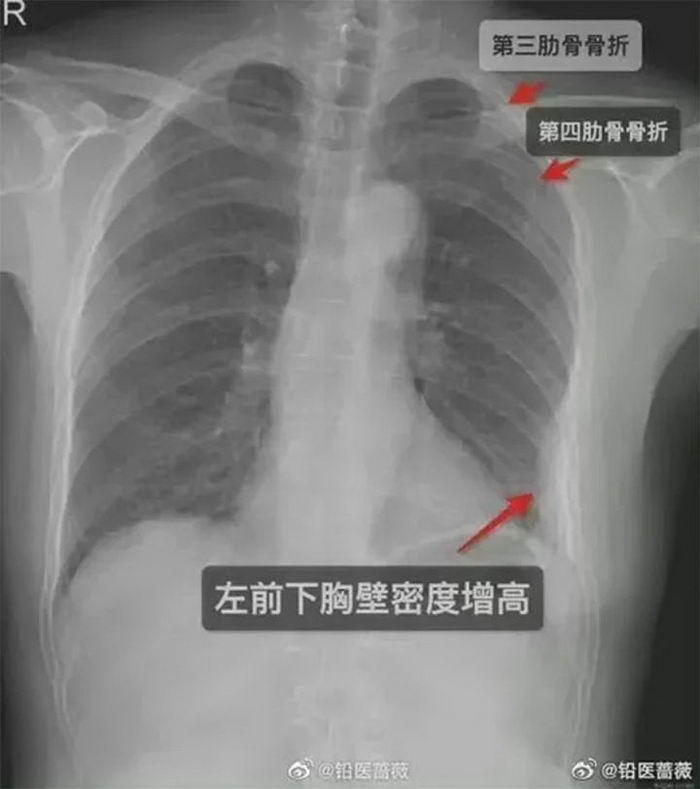 ទោះជាយ៉ាងណាក៏ដោយ ប្រាំថ្ងៃក្រោយមក ការឈឺចាប់នៅក្នុងទ្រូងកាន់តែខ្លាំងឡើង ដូច្នេះហើយ ទើបនាងសម្រេចចិត្តទៅមន្ទីរពេទ្យ ជាលទ្ធផលក្រោយពីការថតកាំរស្មីអ៊ិច គេបានរកឃើញថា នាងមានការបាក់ឆ្អឹង៣ចំណុច ដែល២កន្លែងនៅឆ្អឹងជំនីខាងស្តាំ ចំណុចមួយទៀតគឺនៅផ្នែកខាងឆ្វេងនៃឆ្អឹងជំនី។
