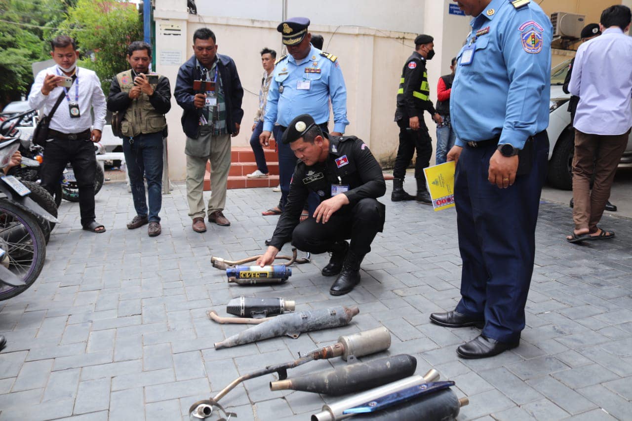 សមត្ថកិច្ចឃាត់ម្ចាស់ម៉ូតូកែច្នៃខុសបច្ចេកទេសចំនួន ១២គ្រឿង ឱ្យដោះដូរបំពង់ស៊ីម៉ាំងខុសបច្ចេកទេសចេញ រួចដាក់បំពង់ស៊ីម៉ាំងដើមវិញ និងផាកពិន័យ ធ្វើកិច្ចសន្យាអប់រំ