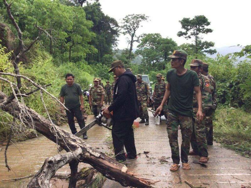 ទំនប់ទឹកមួយដ៏ធំ និងផ្លូវបេតុង១ខ្សែ នៅលើខ្នងភ្នំដងរែកបានរងការបាក់ស្រុត ហូរច្រោះដាច់ជាអន្លើៗ ដោយសារទឹកភ្លៀង