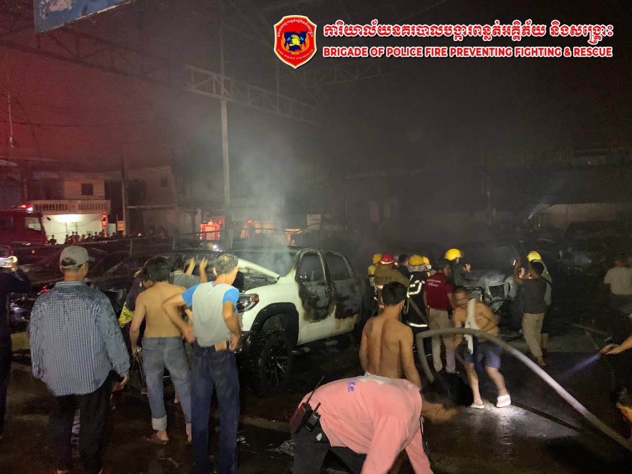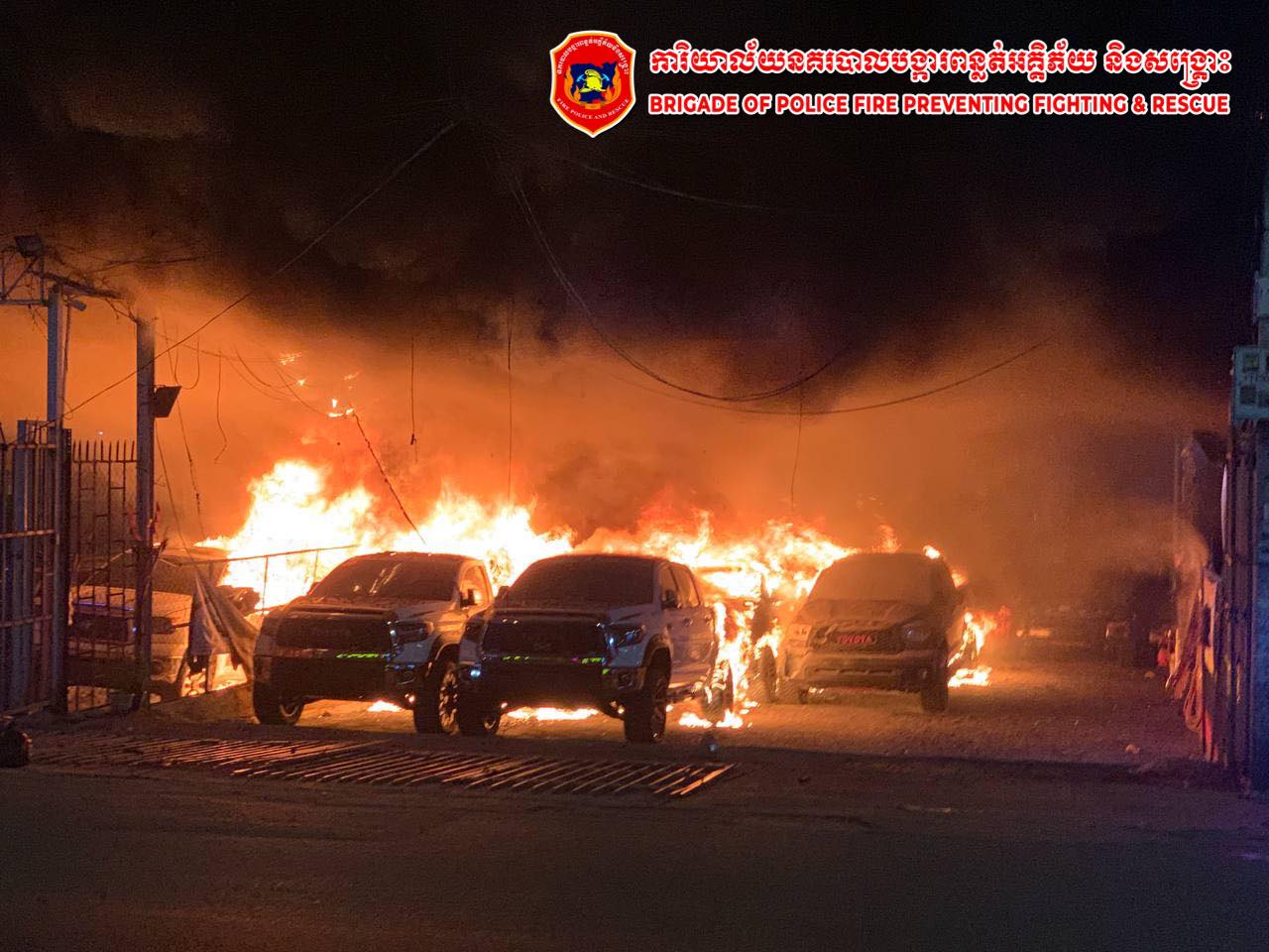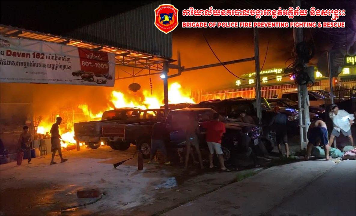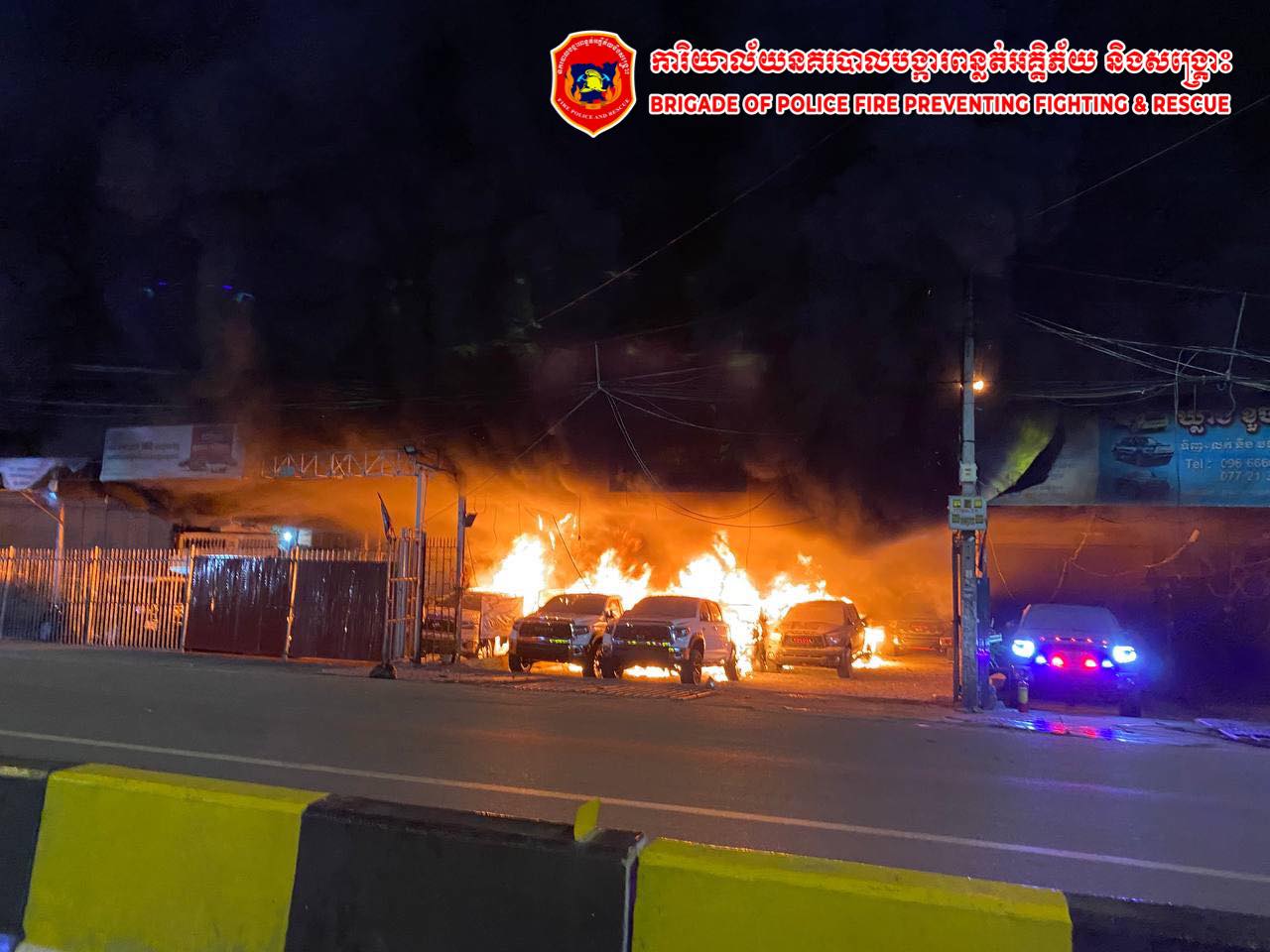 លោកវរសេនីយ៍ឯក ព្រហ្ម យ៉ន នាយ ការិយាល័យនគរបាលបង្ការពន្លត់អគ្គិភ័យ និងសង្គ្រោះ នៃស្នងការដ្ឋាននគរបាលរាជធានីភ្នំពេញ បានប្រាប់ដឹងថា ដោយទទួលបានព័ត៌មានពីប្រជាពលរដ្ឋថា មានអគ្គិភ័យកំពុងឆាបឆេះឃ្លាំងលក់រថយន្ត មួយកន្លែង នៅជិតអង់តែនទួលគោក ភ្លាមៗនោះ លោកក៏បានបញ្ជាឲ្យរថយន្តពន្លត់អគ្គិភ័យរបស់ស្នងការដ្ឋាននគរបាលរាជធានីភ្នំពេញគ្រប់គោលដៅទាំងអស់ ដើម្បីចេញជួយអន្តរាគមន៍ផងដែរ។