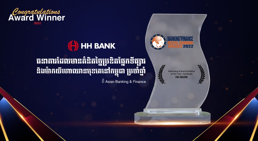 សិង្ហបុរី- ស្ថិតក្នុងរយៈពេលដ៏ខ្លះ នេះជាលើកទីមួយ និងដំបូងបំផុតរាប់ចាប់តាំងពីពេលបើកដំណើរការប្រតិបត្តិការ និងសេវាកម្មផ្នែកហិរញ្ញវត្ថុជូនអតិថិជនក្នុងប្រទេសកម្ពុជា ដែលធនាគារ HH Bank ទទួលបានពានរង្វាន់ឈានមុខគេផ្នែកទីផ្សារ និងម៉ាកយីហោ ក្នុងប្រទេសកម្ពុជា ពីកម្មវិធី Asian Banking & Finance Retail Banking Award 2022 ។ សមទ្ធិផលដ៏មានអត្ថន័យមួយនេះបានឆ្លុះបញ្ចាំងពីការទទួលស្គាល់ទៅលើកិច្ចខិតខំប្រឹងប្រែង របស់ថ្នាក់ដឹកនាំ បុគ្គលិក និងក្រុមការងារពាក់ព័ន្ធទាំងអស់ ក្នុងការប្តេជ្ញាជម្រុញ និងអភិវឌ្ឍនូវផលិតភាព និងវឌ្ឍនភាព និងដំណើរវិវត្តន៍ឆ្ពោះទៅមុខឥតឈប់ឈរបស់ ធនាគារ HH BANK សម្រាប់ប្រជាជនកម្ពុជា។