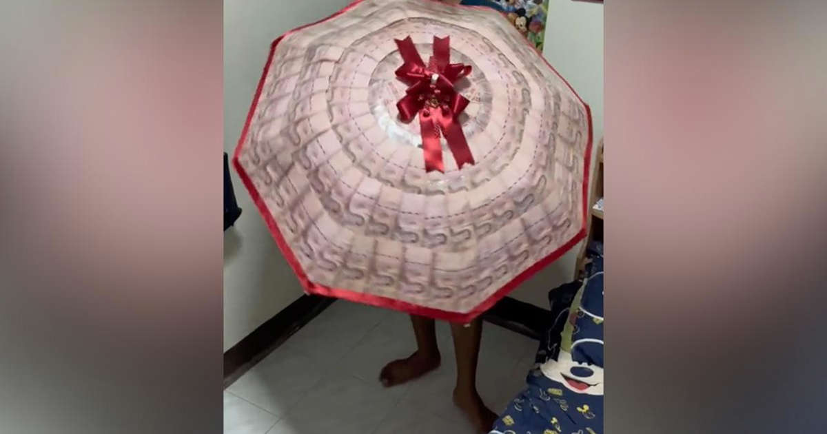 ក្លាចអូនក្តៅ! បុរសម្នាក់យកក្រដាស់ប្រាក់មកធ្វើជាឆត្រជូនជាកាដូអោយមិត្តស្រីសម្រាប់ថ្ងៃទទួលបរិញ្ញាបត្រ