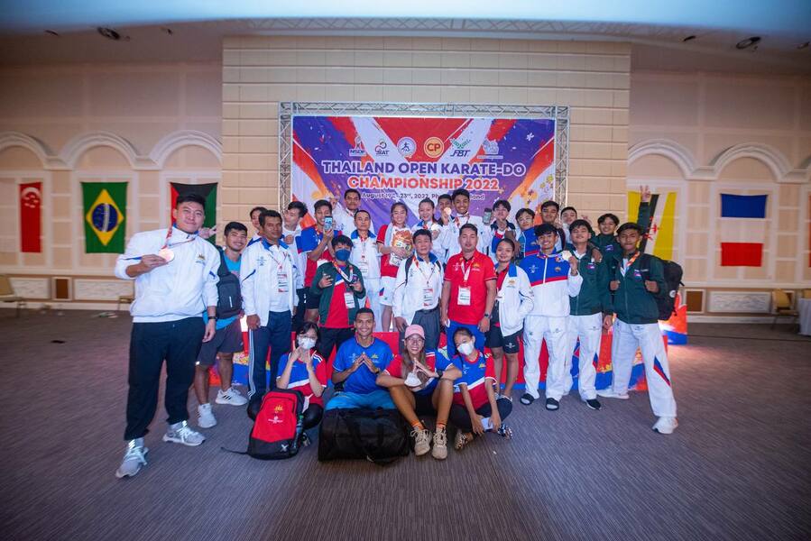 ព្រឹត្តិការណ៍ Thailand Open Karate-DO Championship 2022 កម្ពុជាបានបញ្ជូនប្រធានប្រតិភូ១រូប អនុប្រធានប្រតិភូ១រូប នាយកបច្ចេកទេស១រូប ជំនួយការបច្ចេកទេស២រូប អាជ្ញាកណ្តាល៣រូប គ្រូបង្វឹក គ្រូជំនួយ ៦រូប កីឡាករ-កីឡារិនី៣៦នាក់។