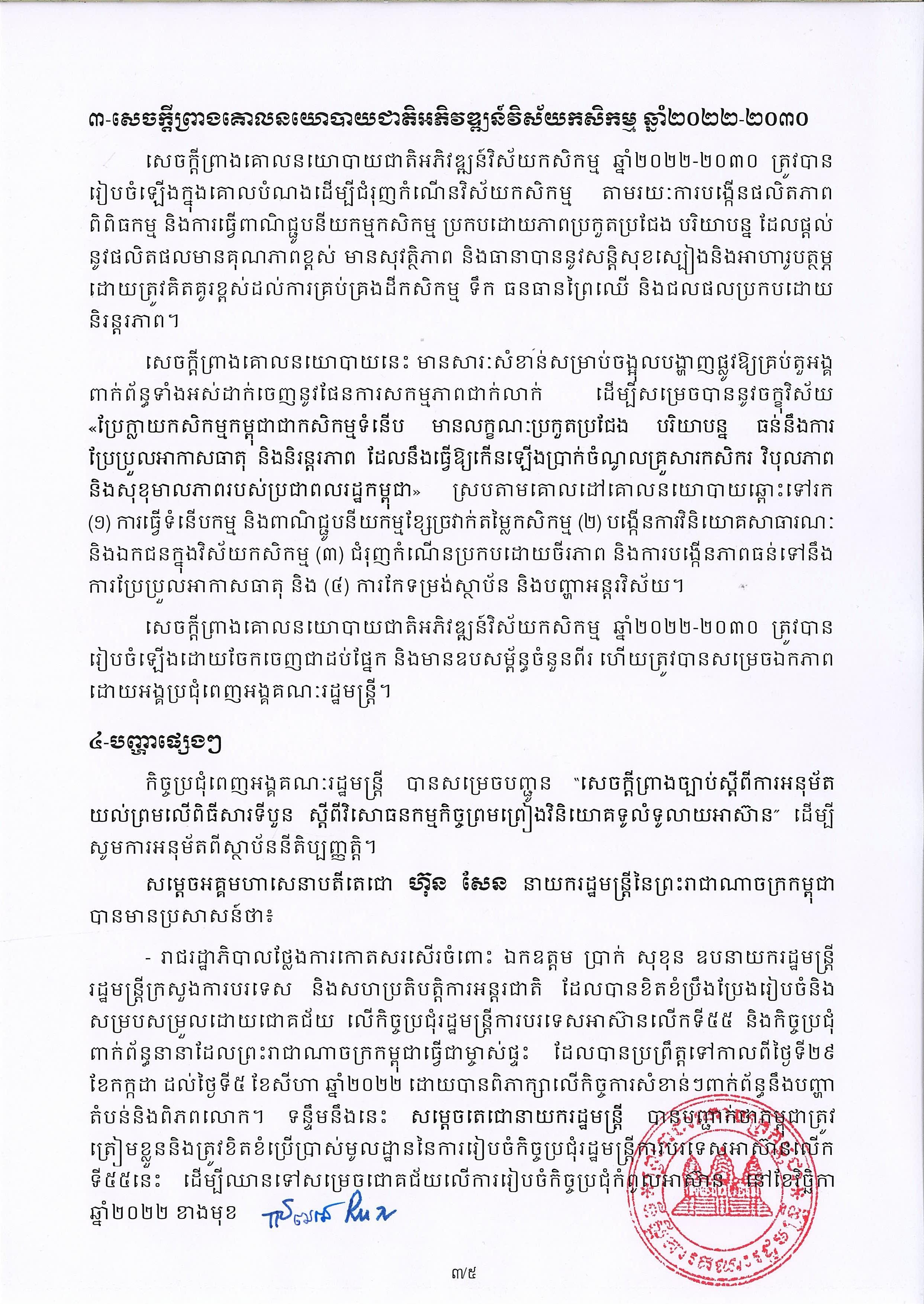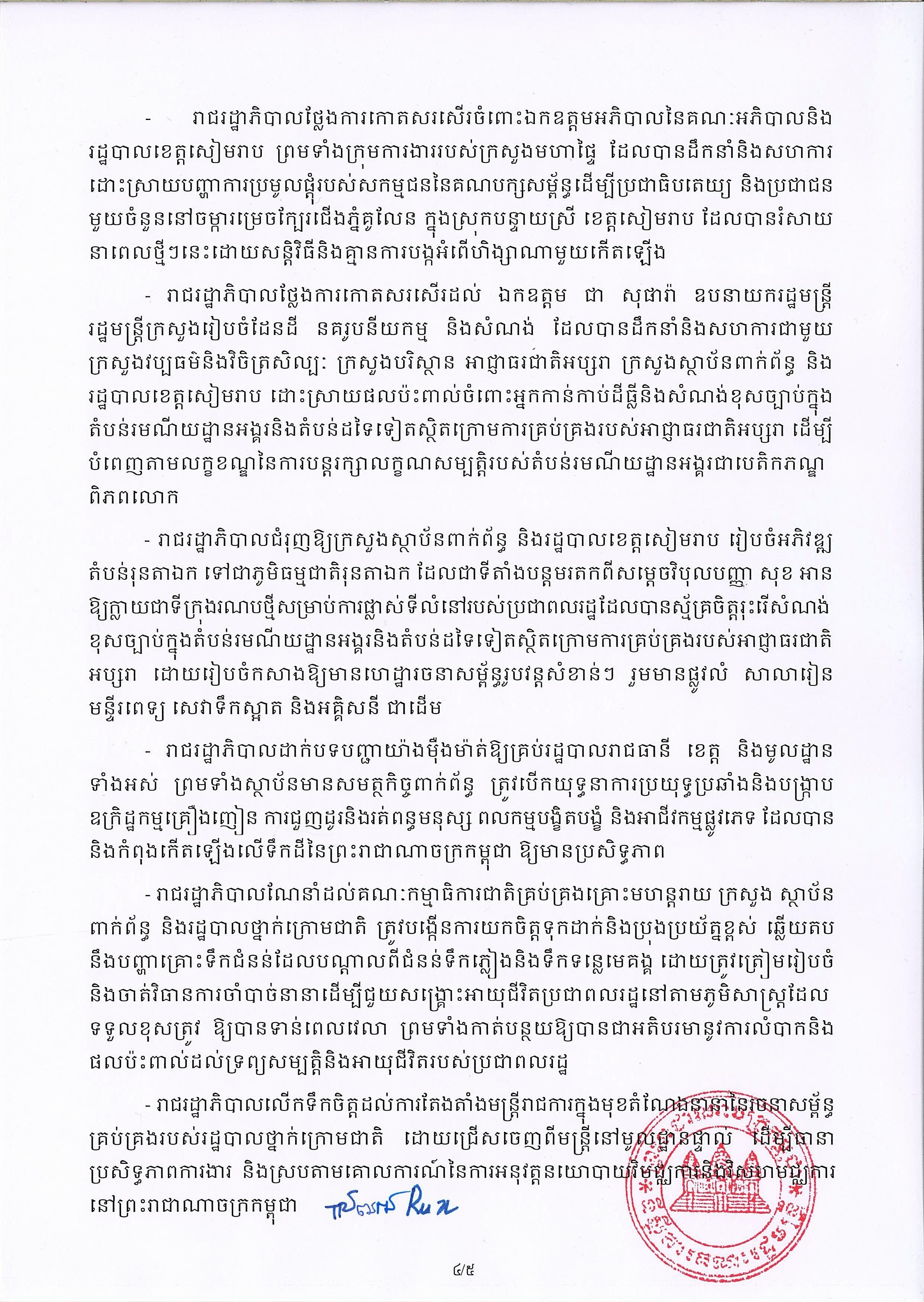 ដោយឡែក ចំពោះការរៀបចំពិធីបុណ្យអុំទូកកម្សាន្តសប្បាយរបស់ប្រជាជននៅតាមបណ្តារាជធានីខេត្តនានាទូទាំងប្រទេស គឺអាចប្រព្រឹត្តទៅបានតាមលទ្ធភាពជាក់ស្តែង ដោយគិតទាំងពិធីបុណ្យភ្ជុំបិណ្ឌនៅខែកញ្ញា និងពិធីបុណ្យអុំទូក បណ្តែតប្រទីប និងសំពះព្រះខែ អកអំបុក នៅខែវិច្ឆិកា ដើម្បីបង្កភាពសប្បាយរីករាយជូនប្រជាពលរដ្ឋ បង្កើនបរិយាកាសទេសចរណ៍ ក៏ដូចជាផ្តល់ឪកាសនៃការរកប្រាក់ចំណូលដល់បងប្អូនប្រជាពលរដ្ឋផងដែរ៕