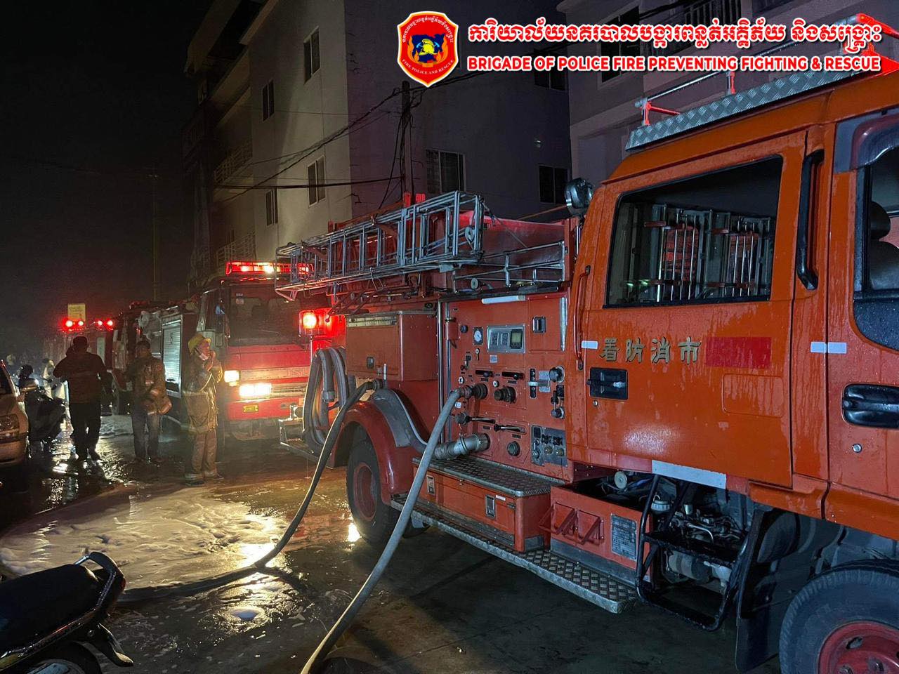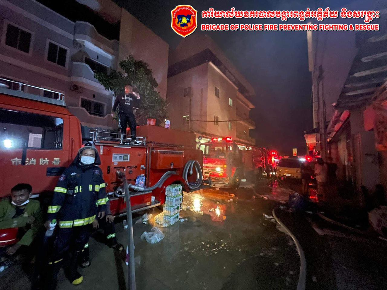 លោកវរសេនីយ៍ឯក ព្រហ្ម យ៉ន ក៏បានបញ្ជាក់ថា ដោយនៅក្នុងរង្វង់ប្រតិបត្តិការនេះ គឺកម្លាំងសមត្ថកិច្ចរបស់យើងបានប្រើប្រាស់រថយន្តពន្លត់អគ្គិភ័យជាច្រើនគ្រឿង ក្នុងនោះរួមមានរថយន្តពន្លត់អគ្គិភ័យរបស់ការិយាល័យរាជធានីភ្នំពេញ ចំនួន ១៨គ្រឿង ប្រើប្រាស់ទឹកអស់ ៥៤ឡាន ស្មើរនឹង ២៣៦ម៉ែត្រគូប និងរថយន្តក្រុមហ៊ុន ស្រាបៀរកម្ពុជា ចំនួន ១គ្រឿង ប្រើប្រាស់ទឹកអស់ ២ឡាន ស្មើរនឹង ១២ម៉ែត្រគូប ទើបបាញ់ពន្លត់ជាស្ថាពរនៅវេលាម៉ោង ១និង៣៥នាទីយប់រំលងអាធ្រាត្រនាថ្ងៃទី១២ ខែកញ្ញា ឆ្នាំដដែរ។