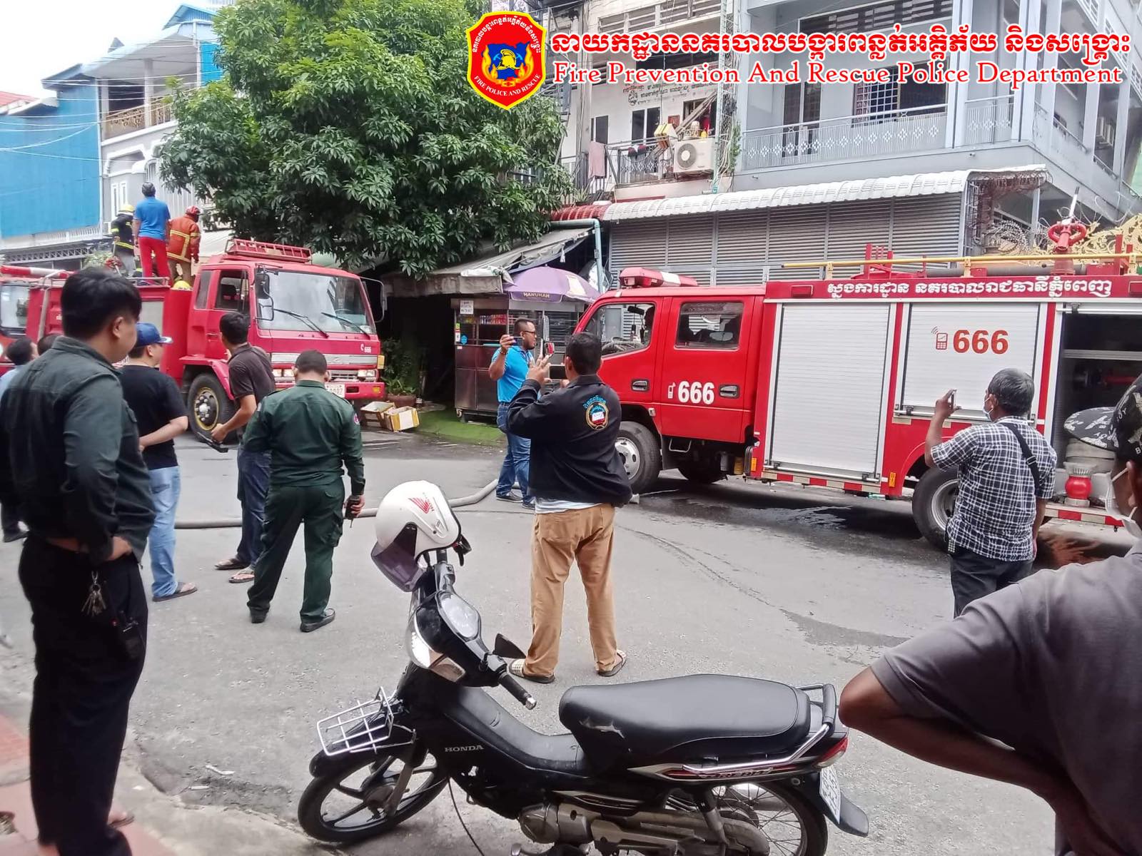 + កងកម្លាំងអន្តរាគមន៍បង្ការពន្លត់អគ្គិភ័យ និងសង្គ្រោះ បានប្រើប្រាស់រថយន្តការិយាល័យអគ្គិភ័យ : ចំនួន ០៦ គ្រឿង ប្រើប្រាស់ទឹកអស់ចំនួន ០៧ @រថយន្ត ស្មើរនឹង ២៨ម៉ែត្រគូប ។