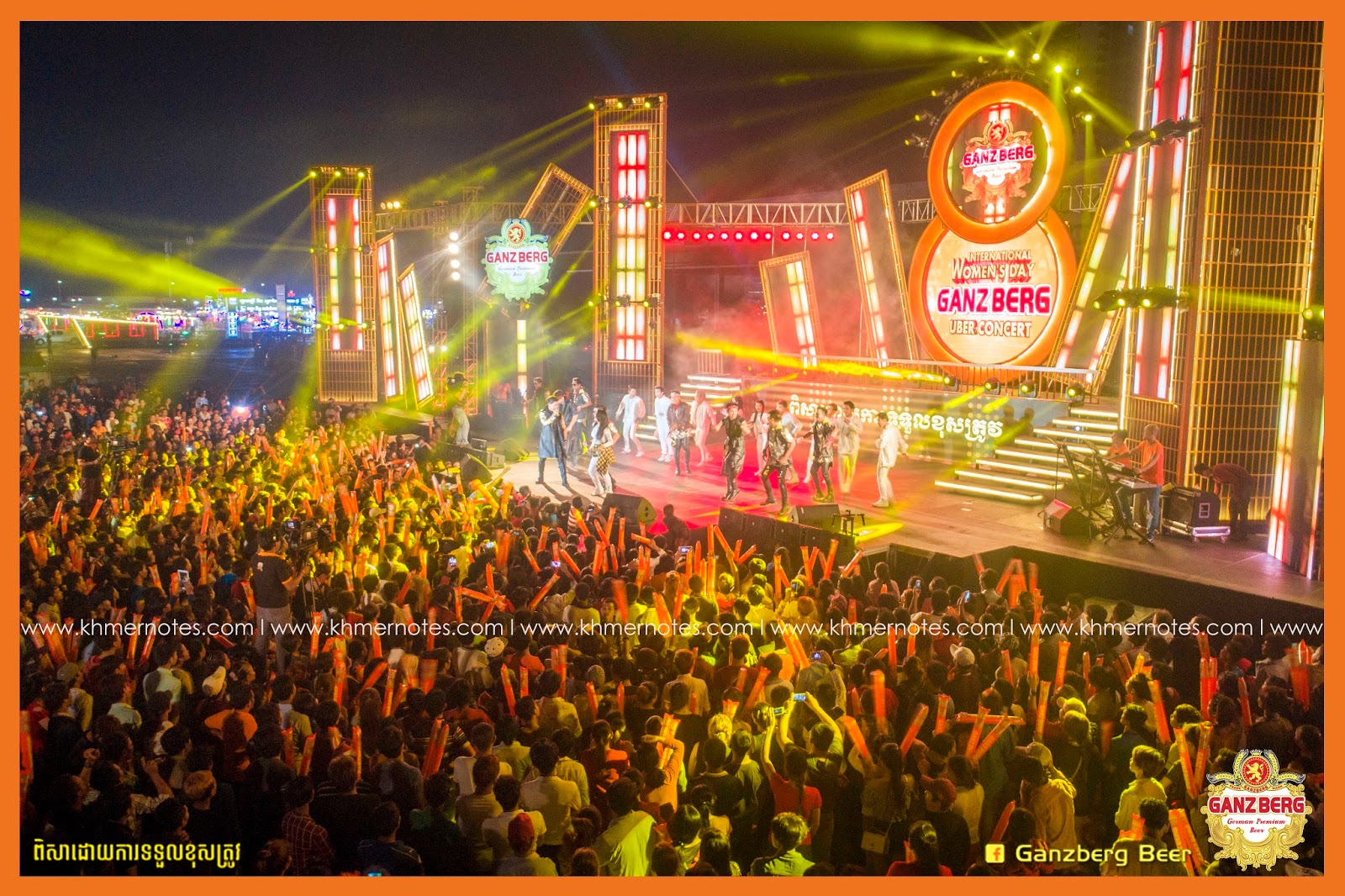 នារាត្រីថ្ងៃទី ៣ ខែមិនា ឆ្នាំ២០១៨ កាលពីយប់មិញនេះ មានការប្រគុំតន្ត្រីដ៏អស្ចារ្យមួយនៅមុខសាលមហោស្រពកោះពេជ្រ ដែលរៀបចំដោយក្រុមហ៊ុនស្រាបៀរ GANZBERG ក្នុងឪកាសអបអរទិវាសិទ្ធិនារីអន្តរជាតិលើកទី ១០៧ ដោយមានតារាចម្រៀងល្បីៗជាច្រើនចូលរួមផង។ ក្នុងរាត្រីដ៏អស្ចារ្យនេះ ក្រុមហ៊ុនក៏បានឆ្លៀតឪកាសនោះ ចែករង្វាន់អាពាហ៌ពិពាហ៌ ដល់គូស្វាមីភរិយា ដែលបានជាវស្រាបៀរ GANZBERG រៀបចំទទួលភ្ញៀវ ក្នុងថ្ងៃមង្គលការរបស់ខ្លួនចំនួនជាង ១០០ គូផងដែរ៕
