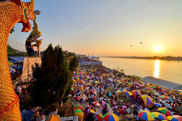 ប្រជាពលរដ្ឋ​ថៃនាំគ្នាសម្រុកចូលទៅបរិវេណ​ទន្លេ​មេគង្គ​ ដើម្បី​រងចាំមើលបាតុភូតភ្លើងនាគហោះឡើងពីទន្លេ យ៉ាងច្រើនកុះករ