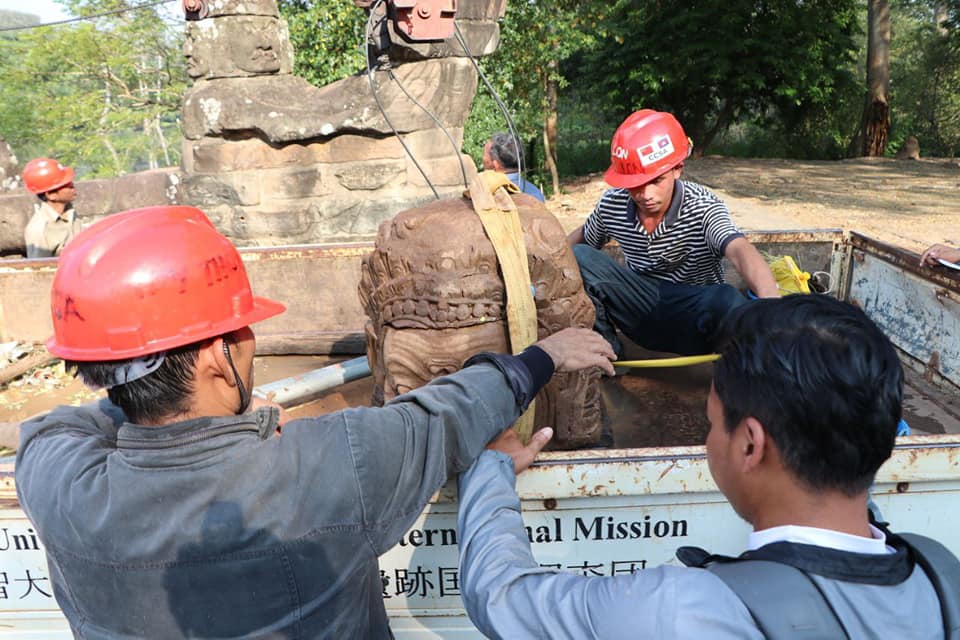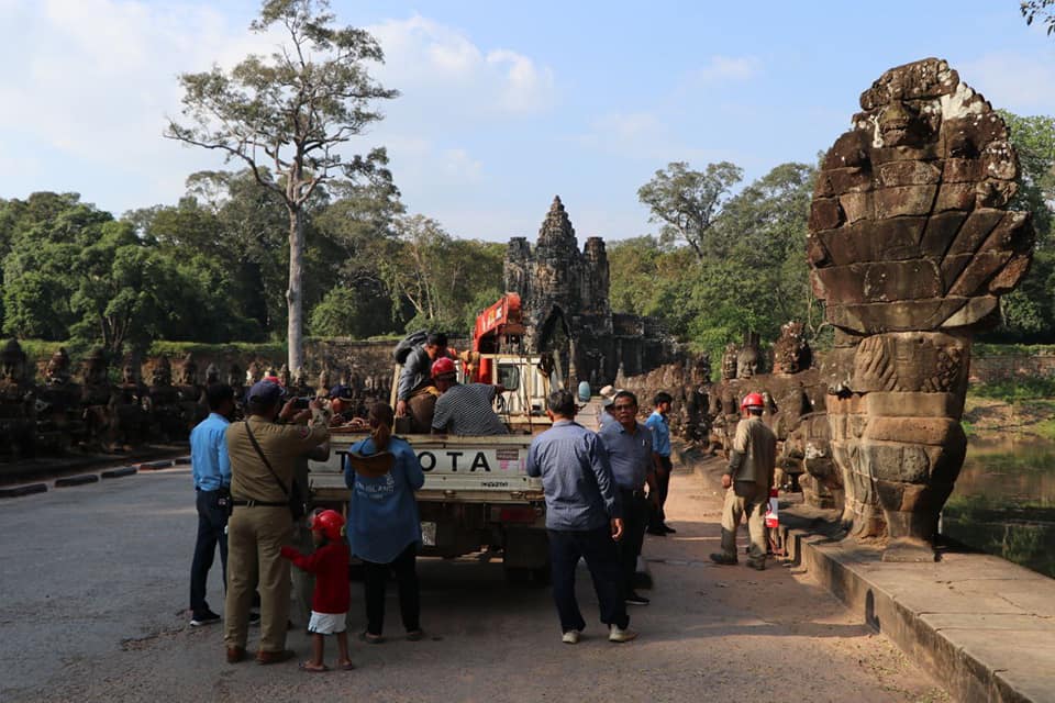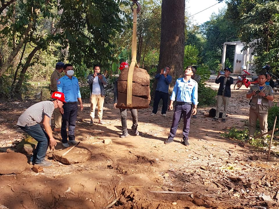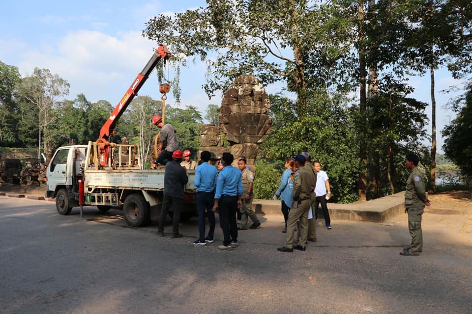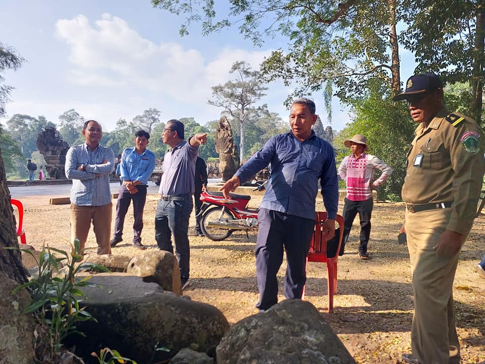 ក្រុមមន្ត្រីនៃអាជ្ញាធរជាតិអប្សរា ប្រទះឃើញបំណែកព្រះកេសអសុរាមួយ នៅប៉ែកខាងកើតខ្លោងទ្វារទន្លេអុំ