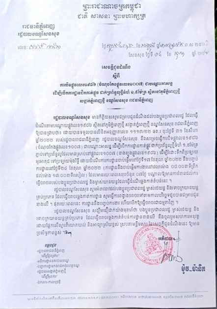 អាជ្ញាធរខណ្ឌសែនសុខ សម្រេចបិទផ្លូវលេខ១៩៨៦ ចំណុចកែងផ្លូវលេខ១០០៧ ជាបណ្តោះអាសន្ន ដើម្បីបើកការដ្ឋានកាត់ផ្លូវដាក់ប្រព័ន្ធលូថ្មី