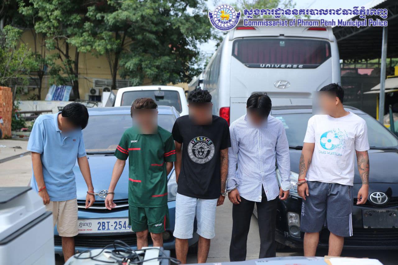 ជនសង្ស័យចំនួន០៥នាក់ ពាក់ព័ន្ធករណីលួចផ្លាកលេខរថយន្ត ត្រូវបានកម្លាំងនគរបាលព្រហ្មទណ្ឌកំរិតស្រាលរាជធានីភ្នំពេញ ឃាត់ខ្លួនជាបន្តបន្ទាប់