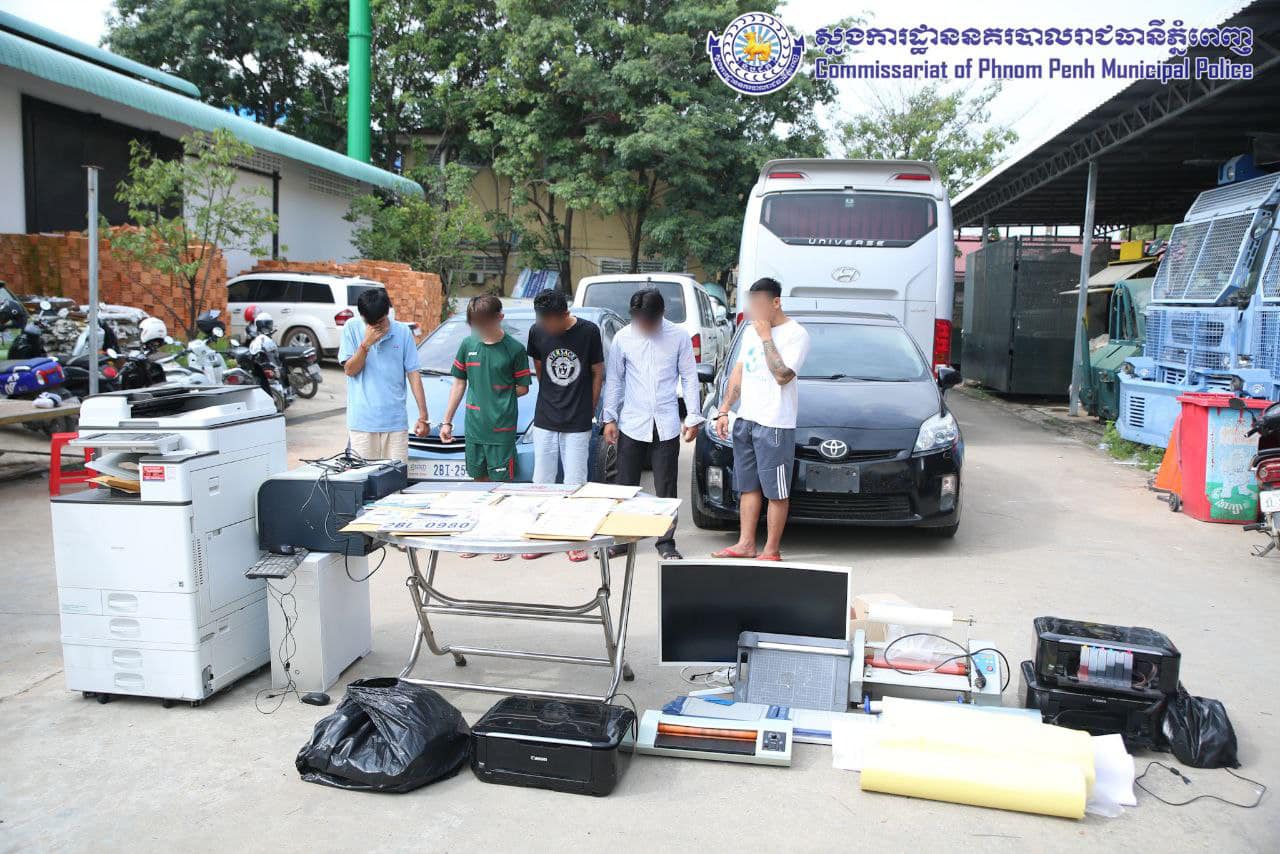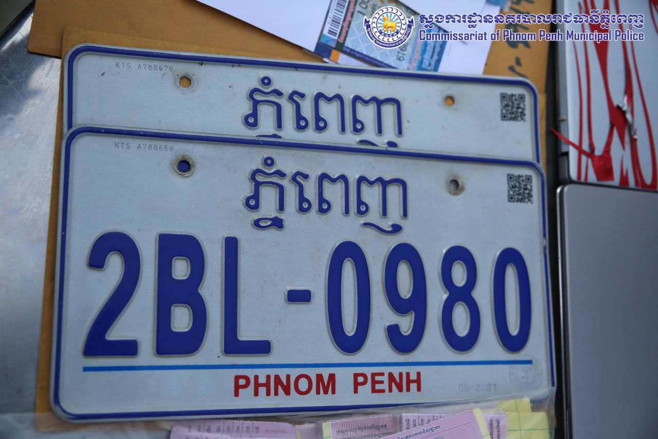 រាជធានីភ្នំពេញ៖ យោងតាមការចុះផ្សាយរបស់ ស្នងការដ្ឋាននគរបាលរាជធានីភ្នំពេញ នៅថ្ងៃទី២៦ ខែតុលា ឆ្នាំ២០២២ បានឱ្យដឹងថា កាលពីថ្ងៃទី២៣-២៤ ខែតុលា ឆ្នាំ២០២២ វេលាម៉ោង ១៣ និង៣០ នាទី កម្លាំងការិយាល័យនគរបាលព្រហ្មទណ្ឌកំរិតស្រាលរាជធានីភ្នំពេញ បានស្រាវជ្រាវឃាត់ខ្លួនជនសង្ស័យចំនួន០៥នាក់ជាបន្តបន្ទាប់ ពាក់ព័ន្ធករណីលួចផ្លាកលេខរថយន្ត ប្រព្រឹត្តនៅចំណុចមុខផ្ទះលេខ១០១ ផ្លូវB ភូមិភ្លូផ្អែម សង្កាត់គោករកា ខណ្ឌព្រែកព្នៅ រាជធានីភ្នំពេញ ប្រព្រឹត្ត កាលពីថ្ងៃទី០៩ ខែតុលា ឆ្នាំ២០២២។