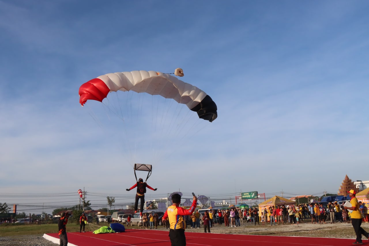 ក្នុងព្រឹត្តិការណ៍ដ៏មហស្ចារ្យមួយនេះ ក្រោយពីការសម្ដែងកីឡាលោតឆ័ត្រយោងលើអាកាសរួចមកលោកជំទាវ ឧកញ៉ា សុខ សុភាព អគ្គនាយការបស់ក្រុមហ៊ុន អ៉ីនធើ-ម៉ាទ្រីដ បេវើរិច (ខេមបូឌា) ក៏បានធ្វើការចុចប៊េតុងពណ៌ក្រហម ដើម្បីប្រកាសការប្រគុំតន្ត្រីទេសចរណ៍ខ្នាតធំជាងគេនៅកម្ពុជា នឹងធ្វើដំណើរទៅកាន់គ្រប់រាជធានីខេត្តក្រុងនៅទូទាំងប្រទេស! សូមបញ្ជាក់ថាក្នុងការសម្ដែងកីឡាលោតឆ័ត្រយោងលើអាកាស ព្រមទាំងមានការប្រគុំតន្ត្រីដ៏កក្រើកឆាកទៀតនោះ បានធ្វើឱ្យព្រឹតិ្តការណ៍ដ៏អស្ចារ្យមួយនេះបន្សល់ទុកនូវផ្ទាំងទស្សនីយភាពដ៏សប្បាយរីករាយយ៉ាងខ្លាំងបំផុតពីសំណាក់អ្នកចូលរួមទស្សនាផ្ទាល់យ៉ាងច្រើនកុះករ និងទិដ្ឋភាពហូកញ្ជ្រៀវ សើចសប្បាយដែលមិនធ្លាប់មាន។