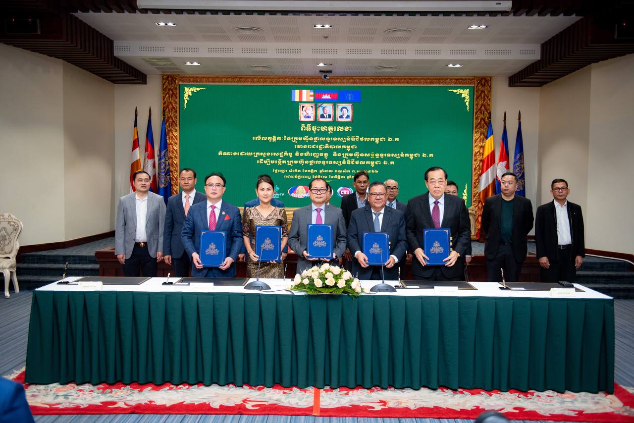 នៅថ្ងៃនេះ រាជរដ្ឋាភិបាលកម្ពុជា តំណាងដោយក្រសួងសេដ្ឋកិច្ច និងហិរញ្ញវត្ថុ និងក្រុមហ៊ុនស័ម្ពន្ធទូរទស្សន៍កម្ពុជា បានប្រារព្ធពិធីចុះហត្ថលេខាលើឯកសារ «លក្ខន្តិកៈក្រុមហ៊ុន» ដើម្បីបង្កើតក្រុមហ៊ុនថ្នាលទូរទស្សន៍ ឌីជីថលកម្ពុជា ដែលមានការអញ្ជើញចូលរួមពីរាជរដ្ឋាភិបាល តំណាងដោយក្រសួងសេដ្ឋកិច្ច និងហិរញ្ញវត្ថុ និងអន្តរក្រសួងមកពី ក្រសួងព័ត៌មាន ក្រសួងប្រៃសណីយ៍ ព្រមទាំងថ្នាក់ដឹកនាំក្រុមហ៊ុនស័ម្ពន្ធទូរទស្សន៍កម្ពុជា ដែលជាការវិនិយោគទុនរួម រវាងក្រុមហ៊ុនផ្សព្វផ្សាយធំៗចំនួន៣ គឺក្រុមហ៊ុនទូរទស្សន៍បាយ័នគ្រុប របស់លោកជំទាវ ហ៊ុន ម៉ាណា និងក្រុមហ៊ុនរ៉ូយ៉ាល់គ្រុប មានទូរទស្សន៍ CBS និង Digital Sky របស់អ្នកឧកញ៉ា គិត ម៉េង និងក្រុមហ៊ុនទូរទស្សន៍ហង្សមាសគ្រុប របស់លោកឧកញ៉ា អ៊ឹង ឆៃងួន អ្នកវិនិយោគទុនជាតិ-អន្តរជាតិ និងភ្ញៀវកិត្តិយសជាច្រើនរូបទៀត។