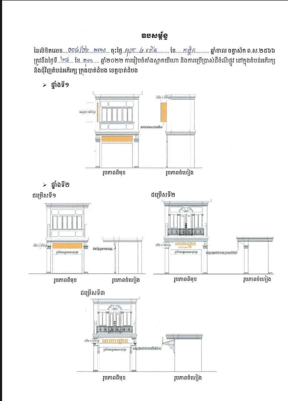 រដ្ឋបាលខេត្តបាត់ដំបង ណែនាំពីការរៀបចំតាំងស្លាកយីហោ និងការប្រើប្រាស់ដីចំណីផ្លូវ នៅក្នុងតំបន់អភិរក្ស និងជុំវិញតំបន់អភិរក្ស ក្នុងក្រុងបាត់ដំបង