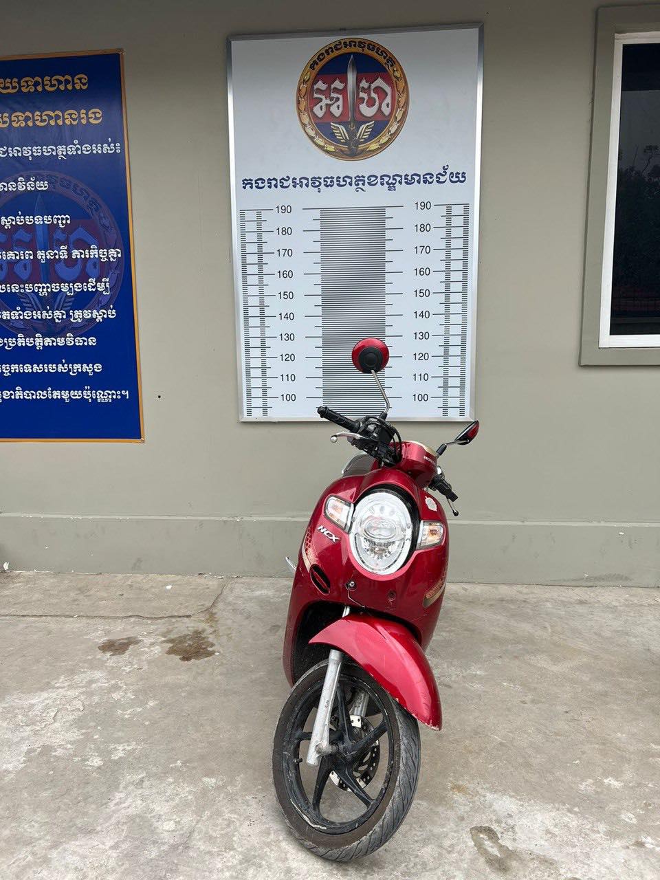 បច្ចុប្បន្នម៉ូតូ០១គ្រឿងនេះ កំពុងរក្សាទុកនៅមូលដ្ឋានកងរាជអាវុធហត្ថខណ្ឌមានជ័យ អាស្រ័យហេតុដូចនេះ បើម្ចាស់ម៉ូតូឬបងប្អូនណា បានស្គាល់ម៉ូតូដូចភិនភាគខាងលើ សូមមកទំនាក់ទំនង នៅមូលដ្ឋានអាវុធហត្ថខណ្ឌមានជ័យ ហើយសូមភ្ជាប់មកជាមួយនូវឯកសារពាក់ព័ន្ធមកជាមួយផង ដើម្បីទទួលយកម៉ូតូត្រឡប់ទៅវិញតាមការគួរ៕