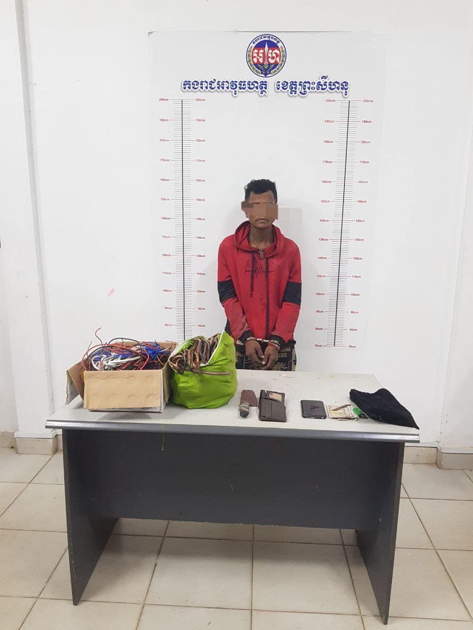 ខេត្តព្រះសីហនុ៖ យោងតាមការបញ្ជាក់ពី រដ្ឋបាលខេត្តព្រះសីហនុ បានឲ្យដឹងថា កាលពីវេលាម៉ោង០៥និង៣០នាទីទាបភ្លឺថ្ងៃទី១៨ ខែវិច្ឆិកា ឆ្នាំ២០២២ កម្លាំងល្បាតកងរាជអាវុធខេត្តព្រះសីហនុ បានទទួលព័ត៌មានពីប្រជាពលរដ្ឋ ករណីលួចកាត់ខ្សែភ្លើងក្នុងអគារមួយកន្លែង នៅចំណុច ភូមិ២ សង្កាត់លេខ៤ ក្រុងព្រះសីហនុ ខេត្តព្រះសីហនុ បានចុះទៅទីតាំងខាងលើ ក្នុងនោះបានឃាត់ខ្លួនជនសង្ស័យ ចំនួន០១នាក់ ឈ្មោះ ភូ សុផា ភេទប្រុស អាយុ៣០ឆ្នាំ ជនជាតិខ្មែរ មុខរបរមិនពិតប្រាកដ យកមកសាកសួរនៅបញ្ជាការដ្ឋានកងរាជអាវុធហត្ថខេត្ត។