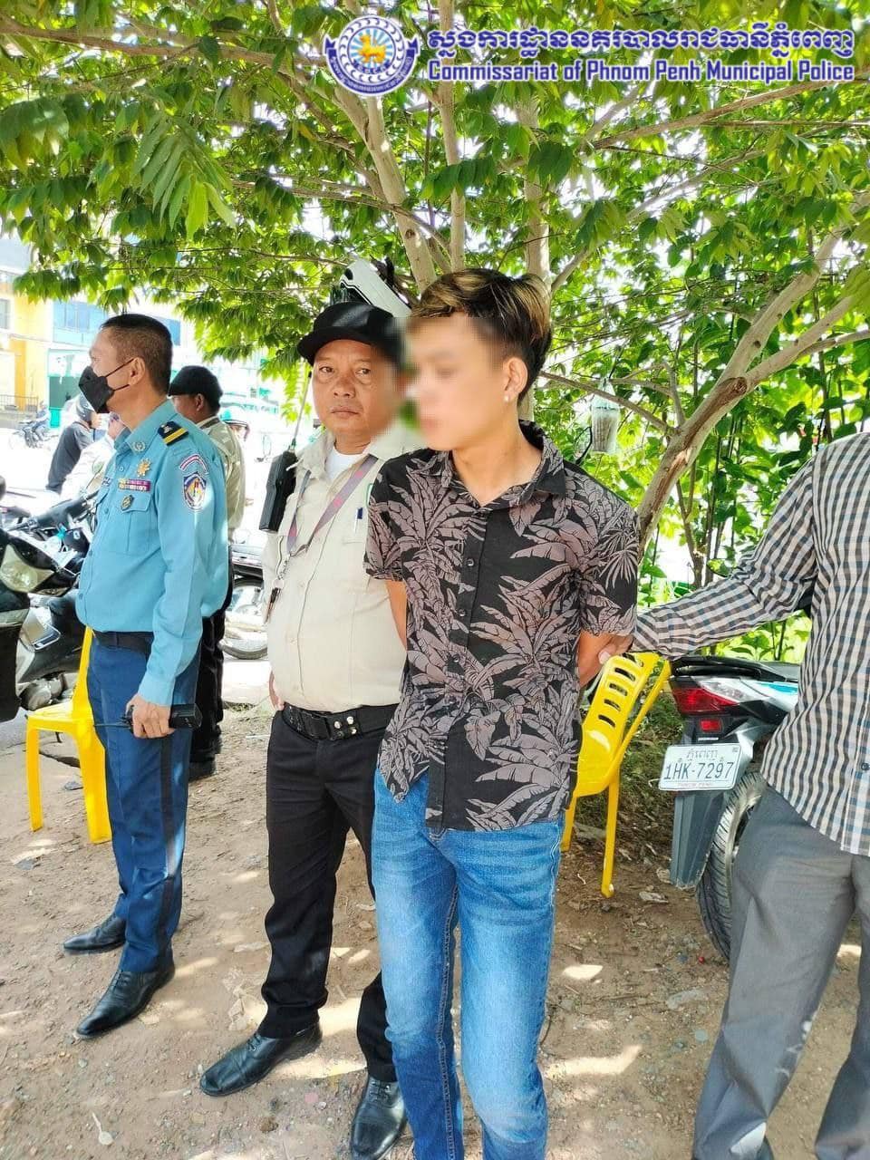 ជនសង្ស័យឃាត់ខ្លួនឈ្មោះ ម៉ៅ ម៉េងគូ ភេទ ប្រុស អាយុ ១៨ឆ្នាំ ជនជាតិ ខ្មែរ មុខរបរ មិនពិតប្រាកដ ស្នាក់នៅភូមិចំពុះក្អែក សង្កាត់ព្រែកថ្មី ខណ្ឌច្បារអំពៅ។