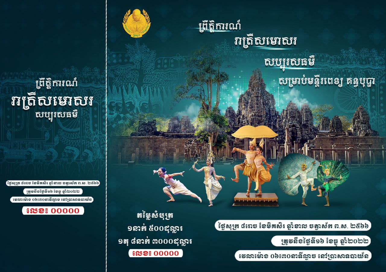 ក្រសួងវប្បធម៌ នឹងរៀបចំព្រឹត្តិការណ៍រាត្រីសមោសរសប្បុរសធម៌ ស្ថិតនៅចំកណ្តាលនៃក្រុងអង្គរធំ ប្រាសាទបាយ័ន ស្វែងរកថវិកាជួយមន្ទីរពេទ្យគន្ធបុប្ផា