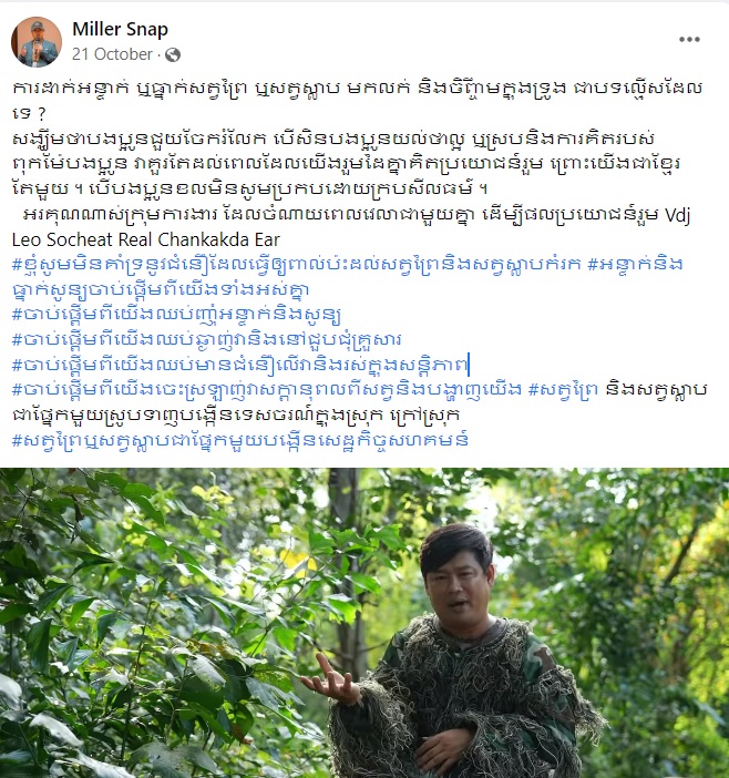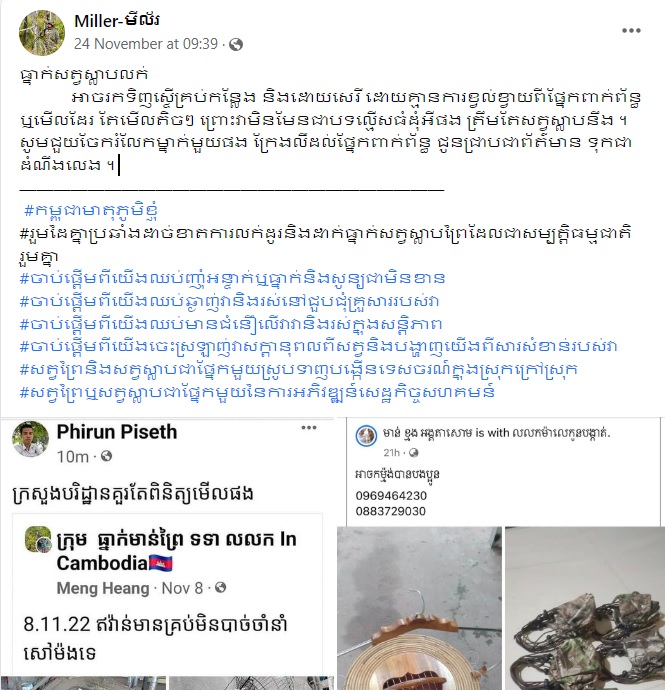 ថ្មីៗនេះមានការចែករំលែកនៅលើបណ្តាញសង្គម បង្ហាញនូវករណីឈ្នួញរកស៊ីមួយចំនួននៅតែបន្តដាក់លក់ធ្នាក់សត្វស្លាប។ បើយោងតាមគណនីហ្វេសប៊ុកឈ្មោះ «Miller-មីល័រ» បានសរសេររៀបរាប់ថា៖ «ធ្នាក់សត្វស្លាបលក់អាចរកទិញស្ទើរគ្រប់កន្លែង និងដោយសេរី ដោយគ្មានការខ្វល់ខ្វាយពីផ្នែកពាក់ព័ន្ធ ឬមើលដែរ តែមើលតិចៗ ព្រោះវាមិនមែនជាបទល្មើសធំដុំអីផង ត្រឹមតែសត្វស្លាបហ្នឹង»។ ម្ចាស់គណនីហ្វេសប៊ុកឈ្មោះ «Miller-មីល័រ» ដដែរនេះធ្លាប់បានទទូចសុំឱ្យបញ្ឈប់ការដាក់ធ្នាក់សត្វស្លាបនៅក្នុងព្រៃ ដែលជាធនធានធម្មជាតិកម្រផងដែរ។