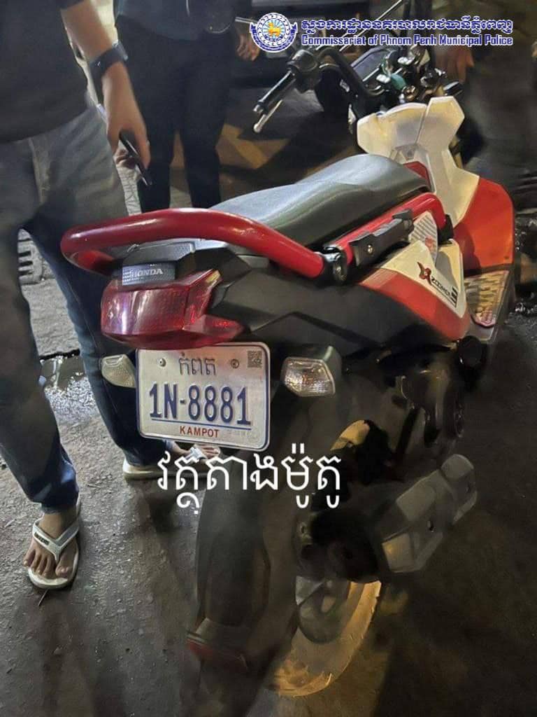 ជនសង្ស័យនារីម្នាក់ លួចម៉ូតូ និងទូរស័ព្ទដៃពីខេត្តកំពត ត្រូវបានកម្លាំងសមត្ថកិច្ចឃាត់ខ្លួនបាននៅមុខរោងកុនចេនឡាខណ្ឌទួលគោក រាជធានីភ្នំពេញ