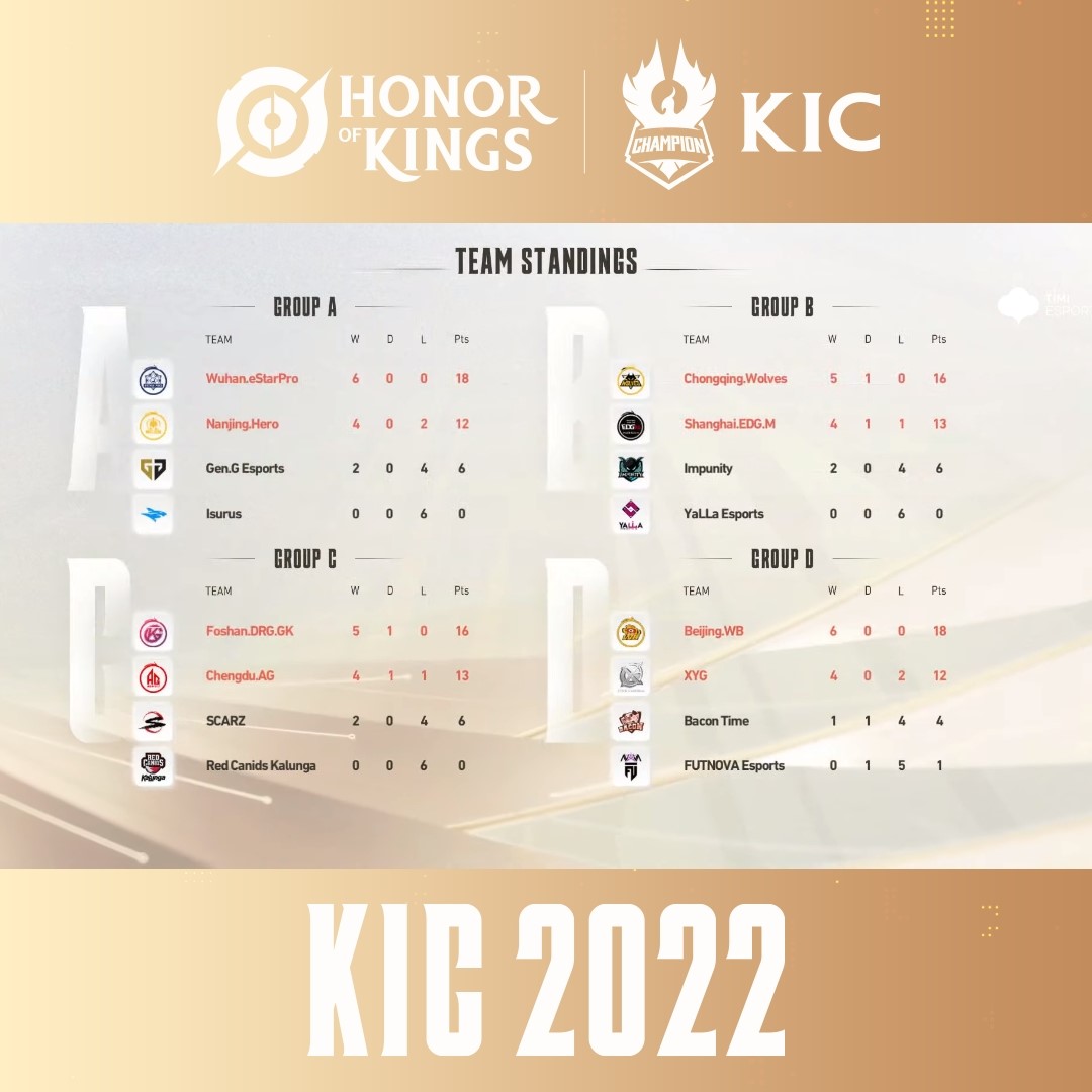 ព្រឹត្តិការណ៍ 2022 Honor of Kings International Championship វគ្គ Group Stage បានបញ្ចប់ជាផ្លូវការនៅថ្ងៃទី 13 ខែ ធ្នូ កន្លងទៅនេះ។ ក្រុម Impunity Esports ក៏បានទទួលយកជ័យជម្នះចំនួន 2 ដងទៅលើជើងឯក Arabia Qualifier – YaLLa Esports ផងដែរ ក៏ប៉ុន្តែក៏បរាជ័យក្នុងការយកជ័យជម្នះពីក្រុមខ្លាំងៗដូចជាជើងឯក៖ KPL Summer – Chongqing.Wolves និង Shanghai.EDG.M មកពី KPL ដែរ។