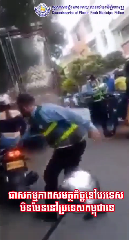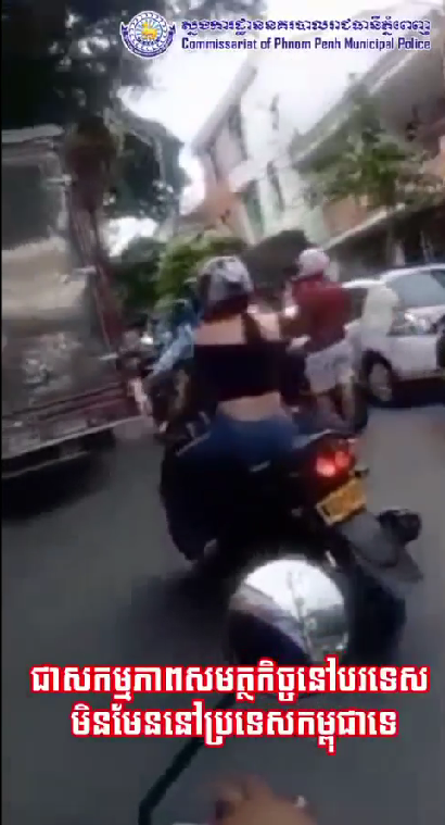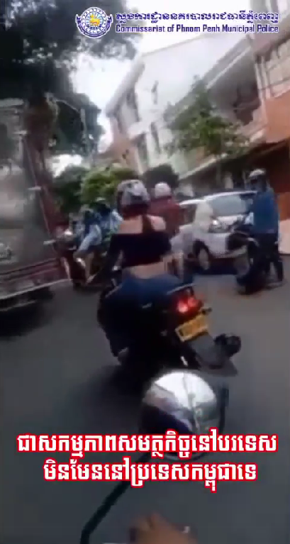 ស្នងការនគរបាលរាជធានីភ្នំពេញ បញ្ជាក់ថា វិដេអូដែលបានចែកចាយតាមបណ្តាញសង្គម ពីសកម្មភាពនារីម្នាក់កំពុងជិះម៉ូតូ ត្រូវមន្ត្រីចរាចរណ៍ស្ទាក់ចាប់ គឺជាសកម្មភាពសមត្ថកិច្ចនៅបរទេស