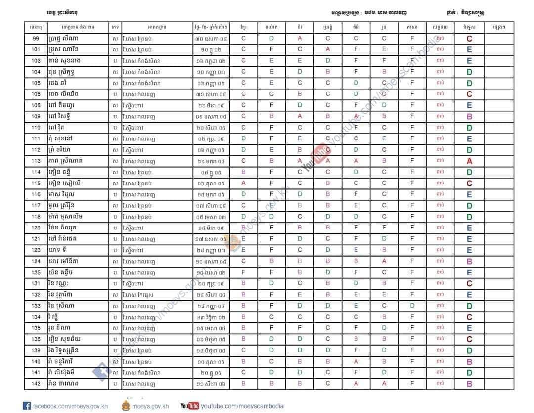សូមបញ្ជាក់ផងដែរថា កាលពីថ្ងៃទី២៣ ខែធ្នូ ឆ្នាំ២០២២ ប្រធានមន្ទីរអប់រំយុវជន និងកីឡាខេត្តព្រះសីហនុបានឱ្យដឹងថា សម័យប្រឡងសញ្ញាបត្រមធ្យមសិក្សាទុតិយភូមិ (បាក់ឌុប) ថ្ងៃទី០៥ ខែធ្នូ២០២២ ឆ្នាំសិក្សា (២០២១-២០២២ )ខេត្តព្រះសីហនុ មានបេក្ខជនប្រឡងចំនួន៖ ១.៦៩៤នាក់ ស្រី ៩០២នាក់ ប្រឡងជាប់ជាស្ថាពរចំនួន ១.៣៦៤នាក់ ស្រី ៧៥៩នាក់។ ក្នុងនោះប្រឡងជាប់គិតជាមធ្យម ភាគ ៨០.៥២ភាគរយ ស្រី ៨៤.១៥ភាគរយ។ សិស្សប្រឡងជាប់ និទ្ទេស A ចំនួន ២១នាក់ ស្រី១៣នាក់ និទ្ទេស B ចំនួន ១១៦នាក់ ស្រី៧៧នាក់ និទ្ទេស C ៣២៥នាក់ ស្រី ១៨៤នាក់ និទ្ទេស D ៤៩៦នាក់ ស្រី ២៧៥នាក់ និងនិទ្ទេស E ចំនួន ៤០៦នាក់ ស្រី ២១០នាក់ ៕